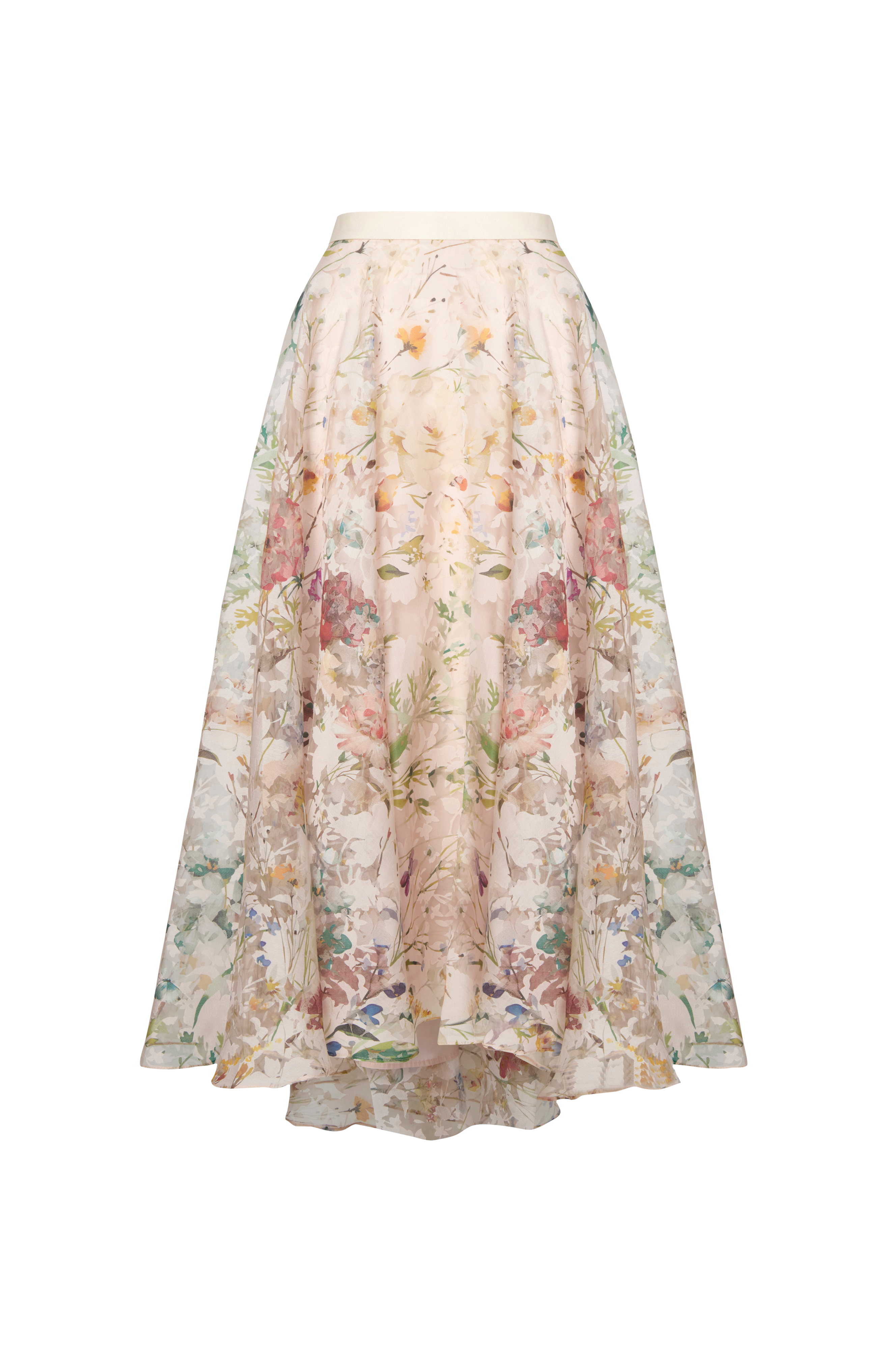 • Foret nederdel med blomstermønster hele vejen rundt• Linning i satin• Lynlås med hægtelukning i den ene side• Længere, afrundet bagside• Længde: 88/106 cm i størrelse 36