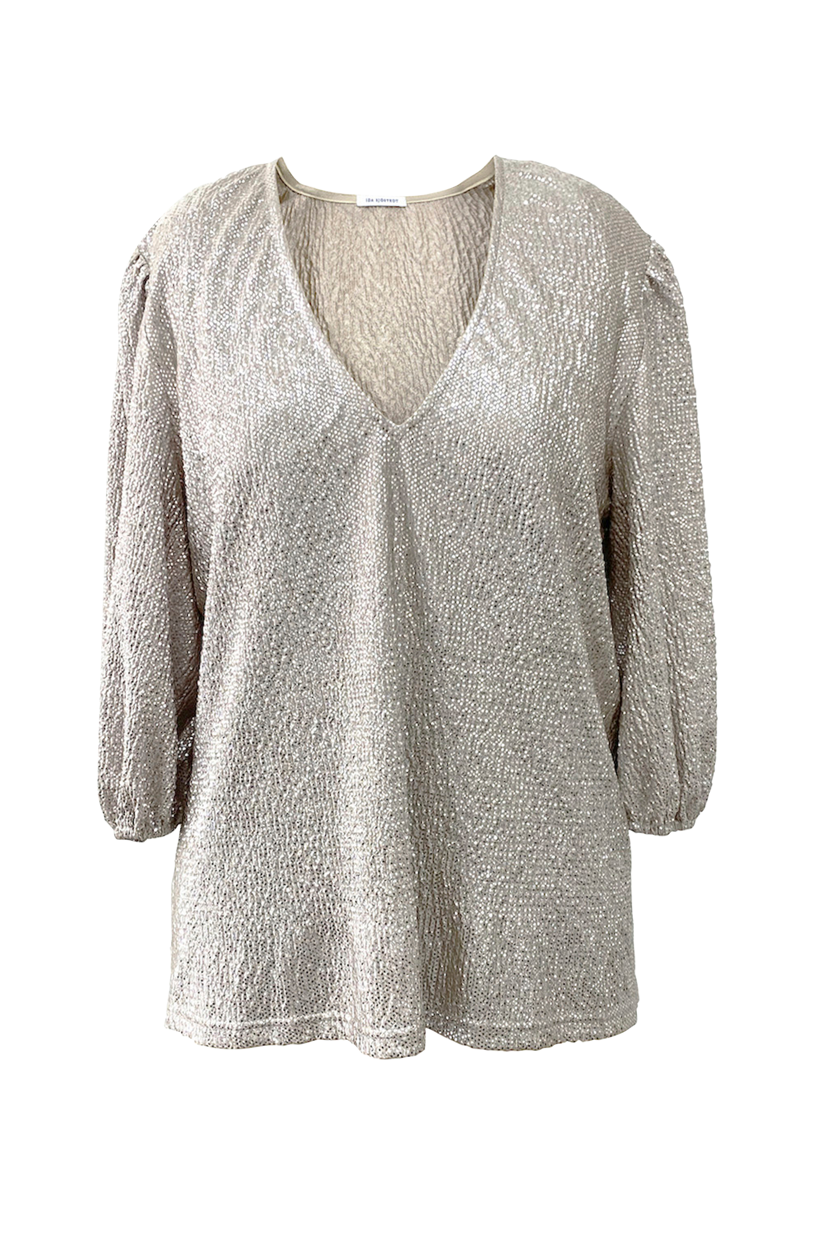 • Skinnende top• V-udskæring• 3/4 lange ballonærmer• Strækkvalitet