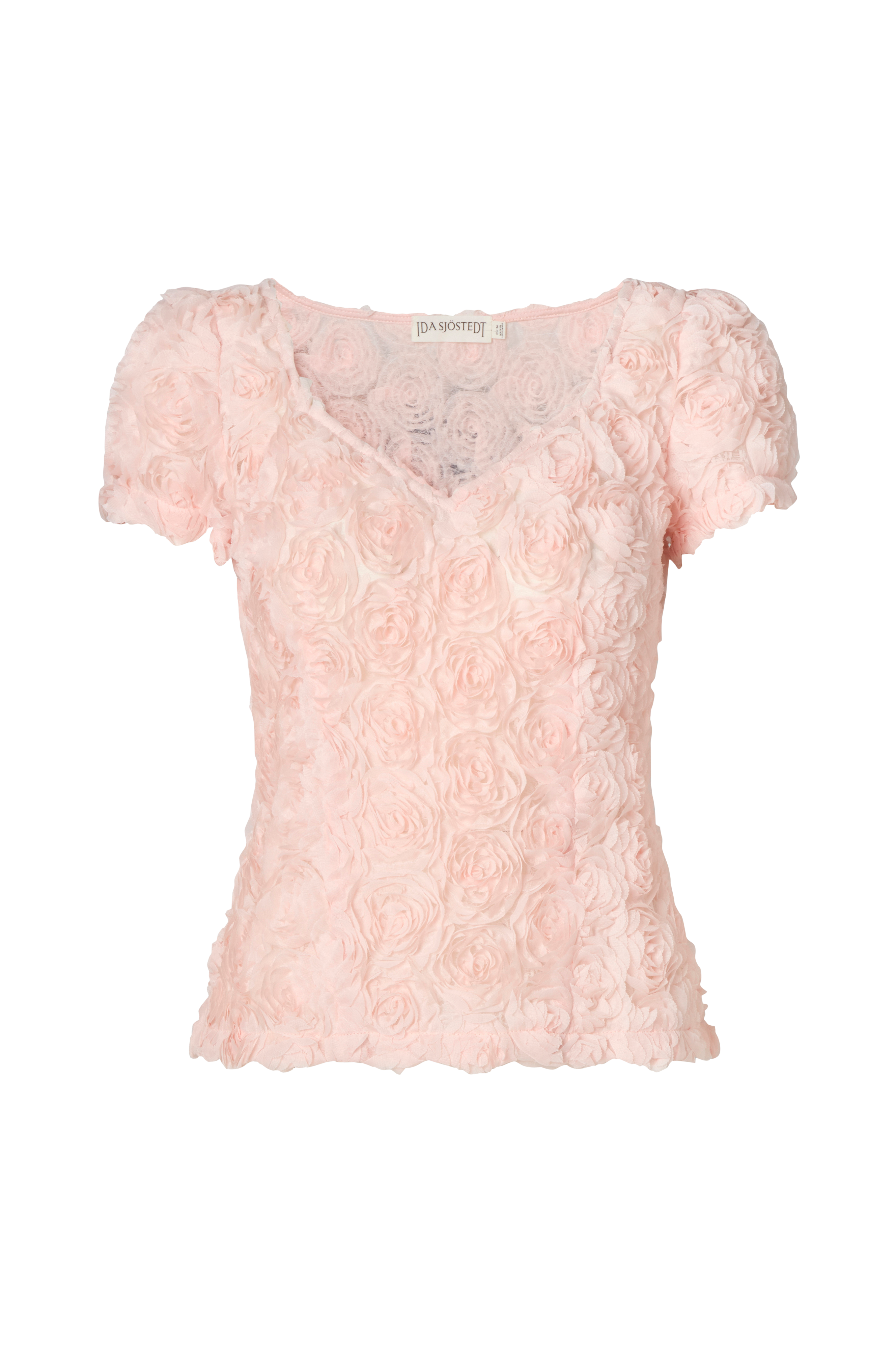 • Figurformede top med blomsterapplikationer hele vejen rundt• Hjerteformet halsudskæring• Korte ærmer
