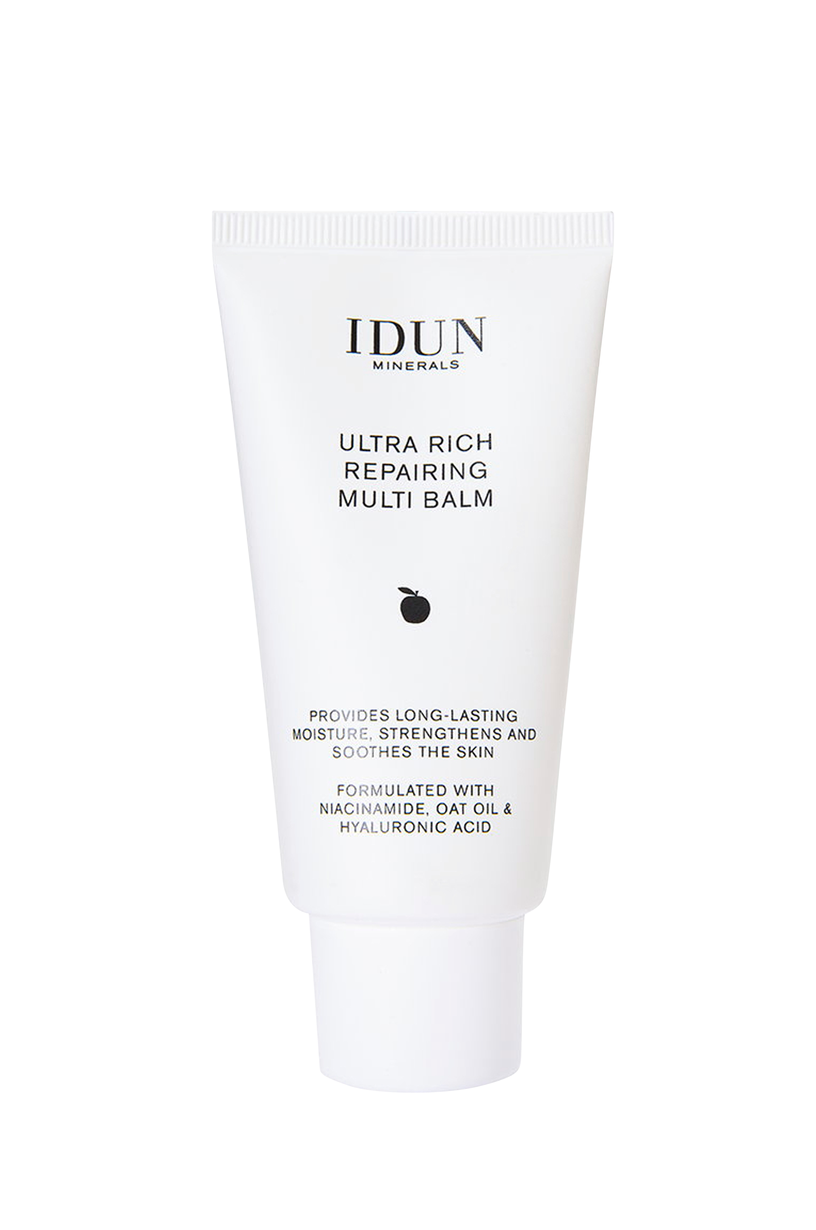 Idun Minerals Ultra Rich Repairing Multi Balm fugter, beskytter og reparerer huden med sin nærende, cremede og veganske formel. Ved hjælp af den unikke "water-in-oil" formel indeholdende hyaluronsyre, 3% niacinamid og fugtgivende olier fra nordisk raps og havre, er fugten indkapslet i huden og giver et langtidsholdbart fugtgivende resultat.
