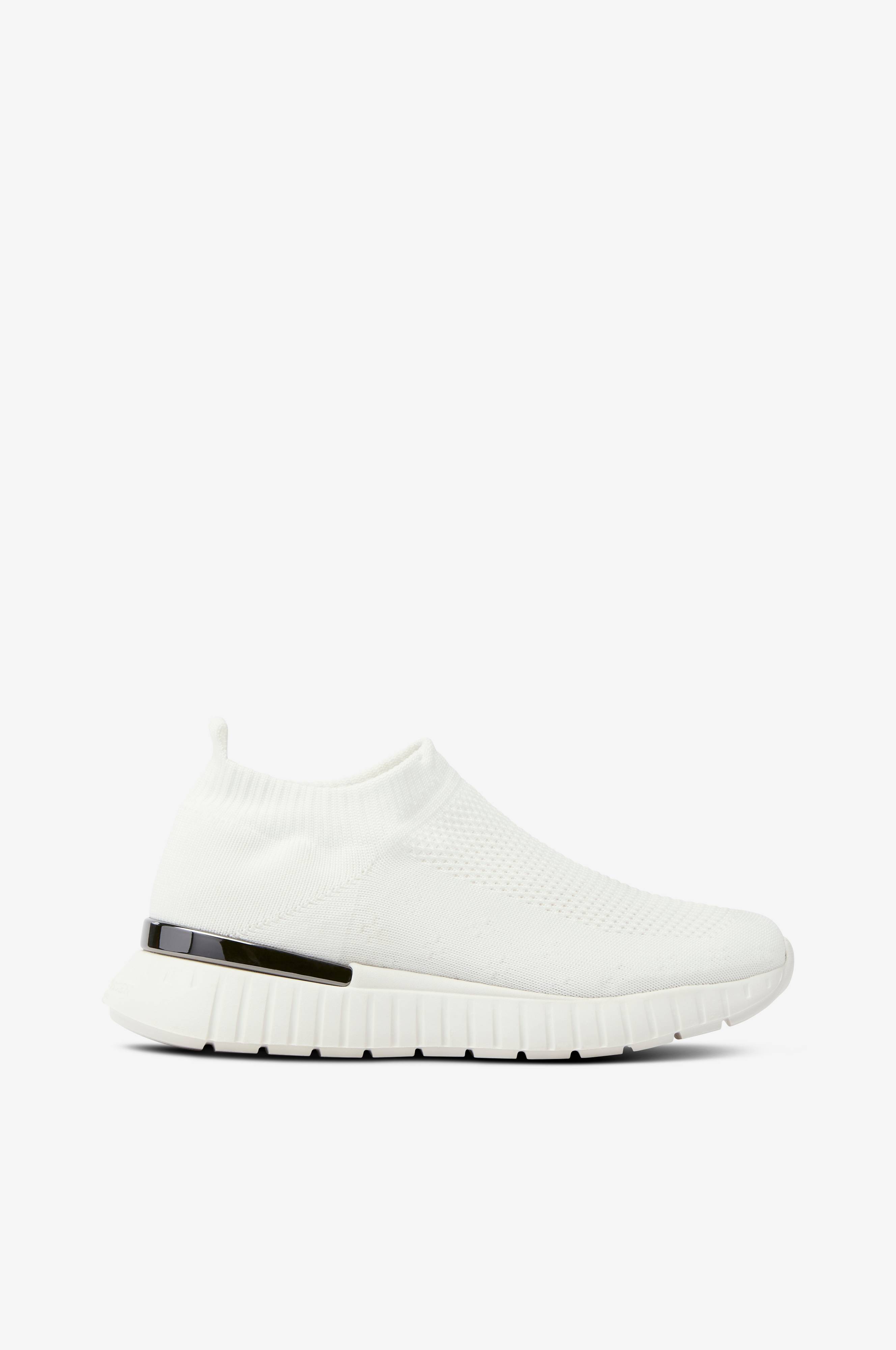 Lette sneakers i strikket stretchmateriale med strukturmønster og rib i åbningen med trækstrop bagpå. Stilrent design uden snørelukning. Sporty sål med riflet mønster og blankt, sølvfarvet panel bagpå. Blødt polstret indersål for ekstra komfort.