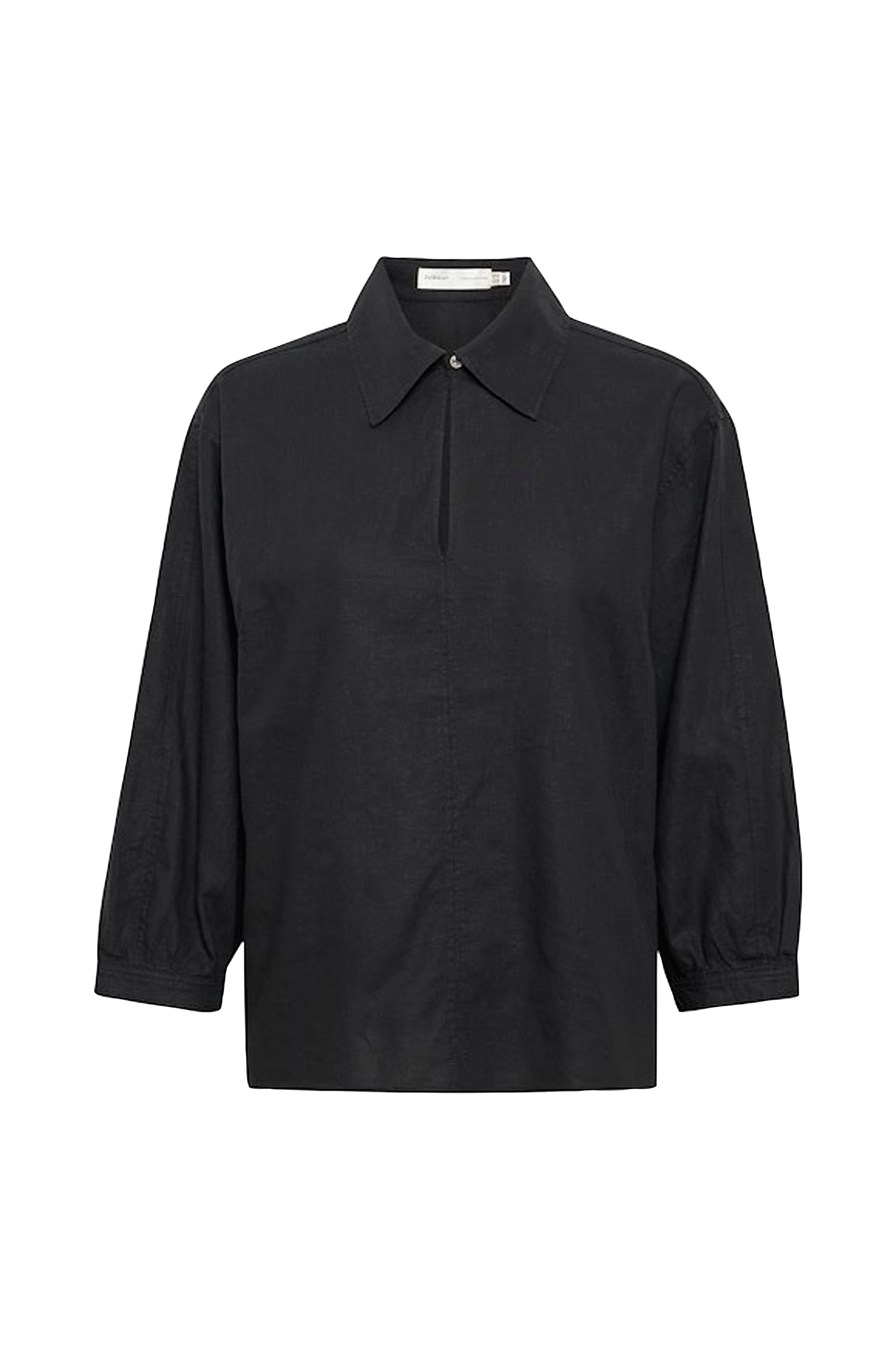 • Bluse i hørblanding• Skjortekrave• Ventilation med knap foran• 3/4 lange ærmer• Løs pasform