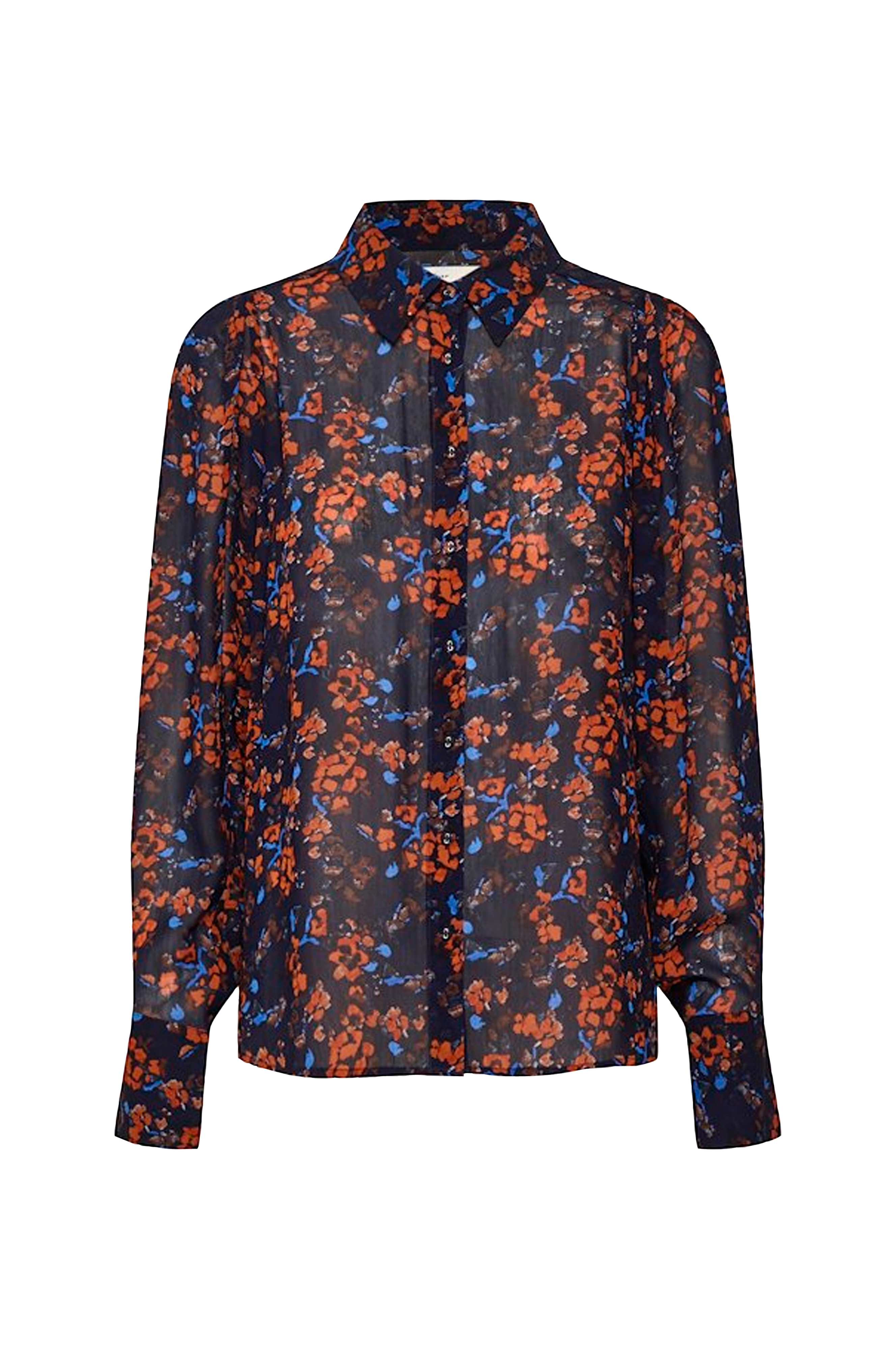 • Lige model i chiffon• Lille skjortekrave• Beklædte knapper foran• Bredt ballonærme med bred manchet