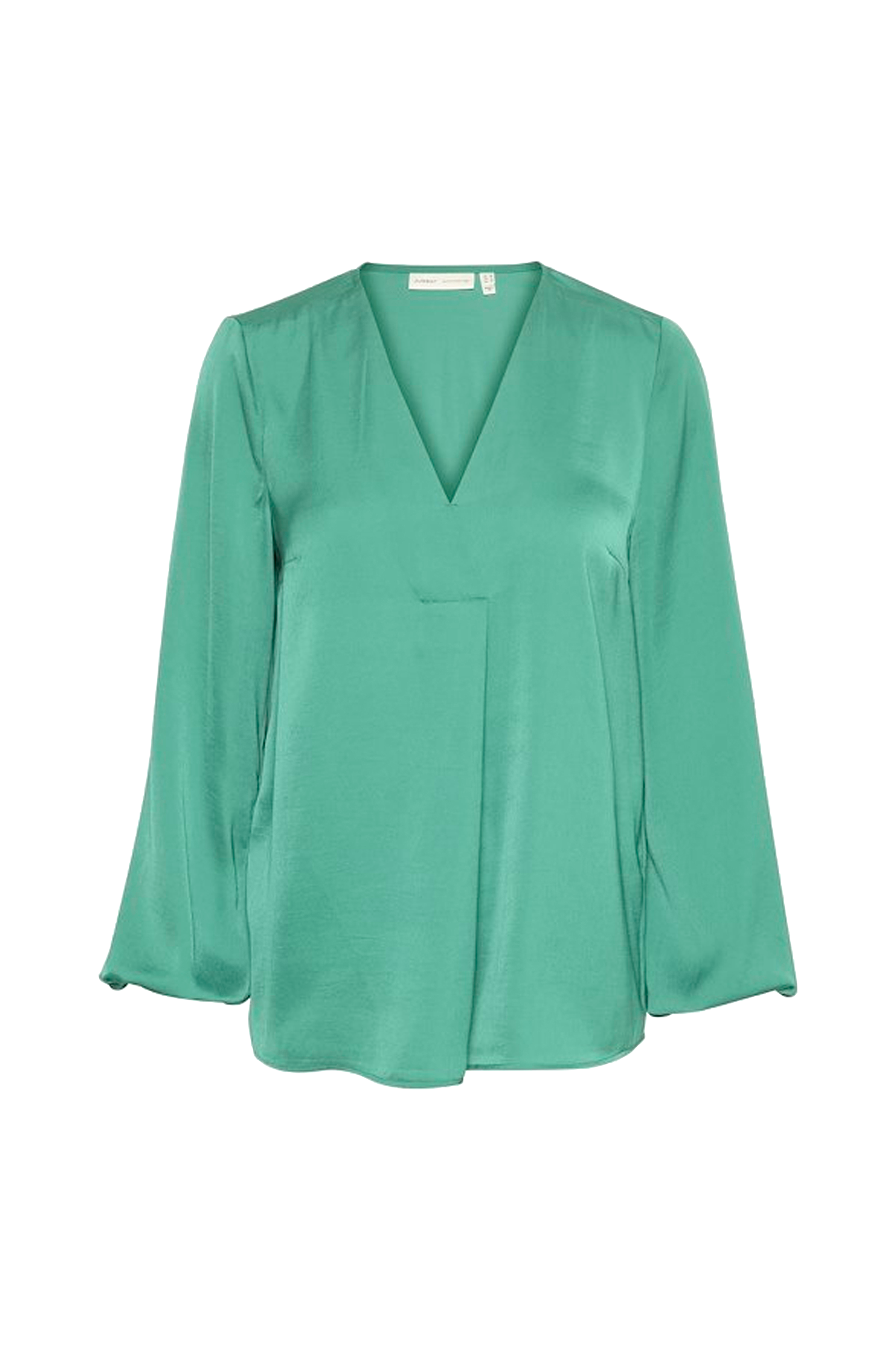 Bluse RindaIW Blouse fra InWear i vævet kvalitet med fin glans og diskret struktur. V-udskæring med lagt læg foran. Lange ærmer med elastiske ærmekanter.