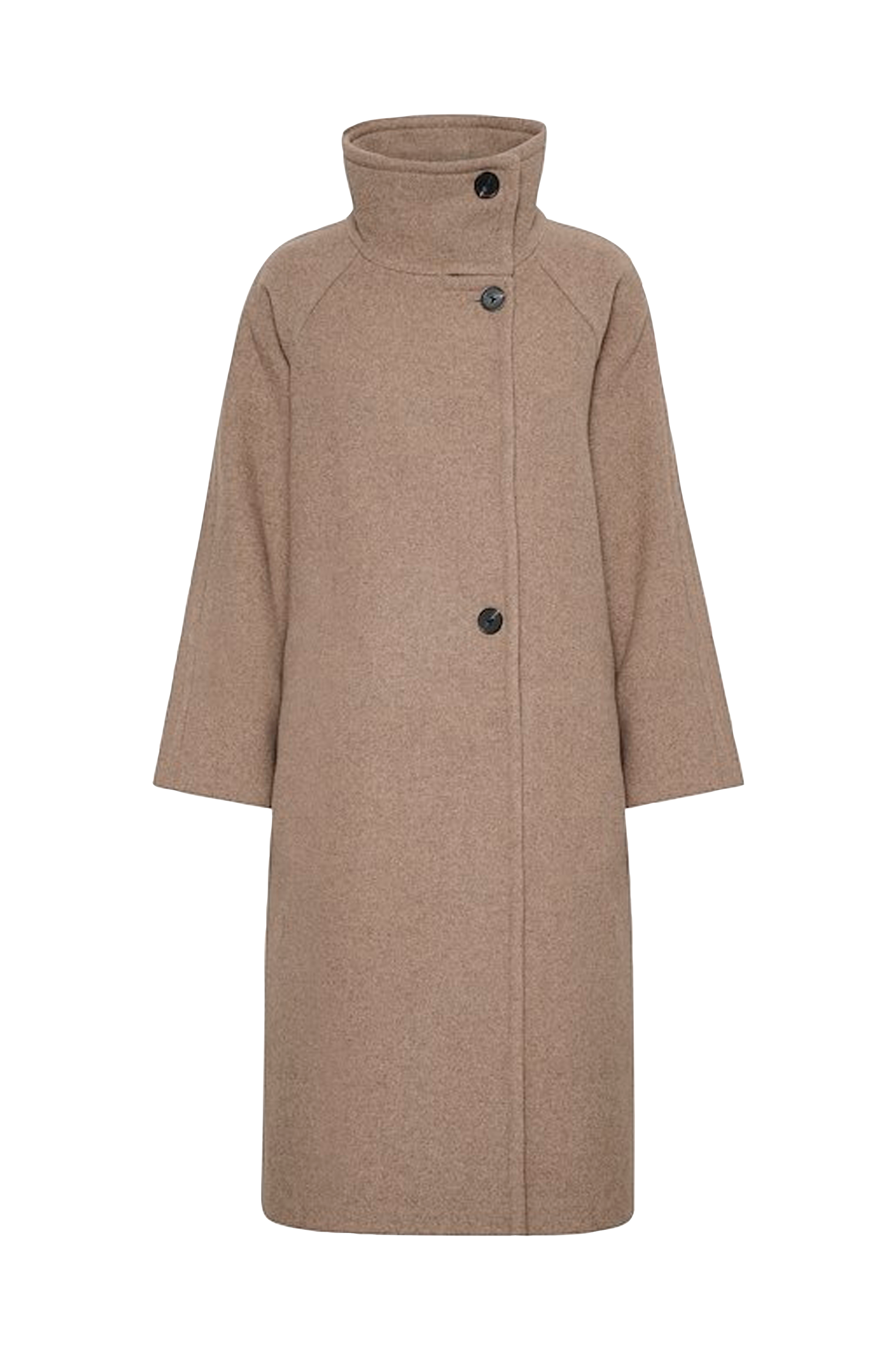• Frakke i uldblanding• Afslappet pasform• Lommer i siderne• Lukning med en synlig og en skjult knap• Høj krave, der kan lukkes eller foldes ned• Længde: 115 cm i størrelse 36