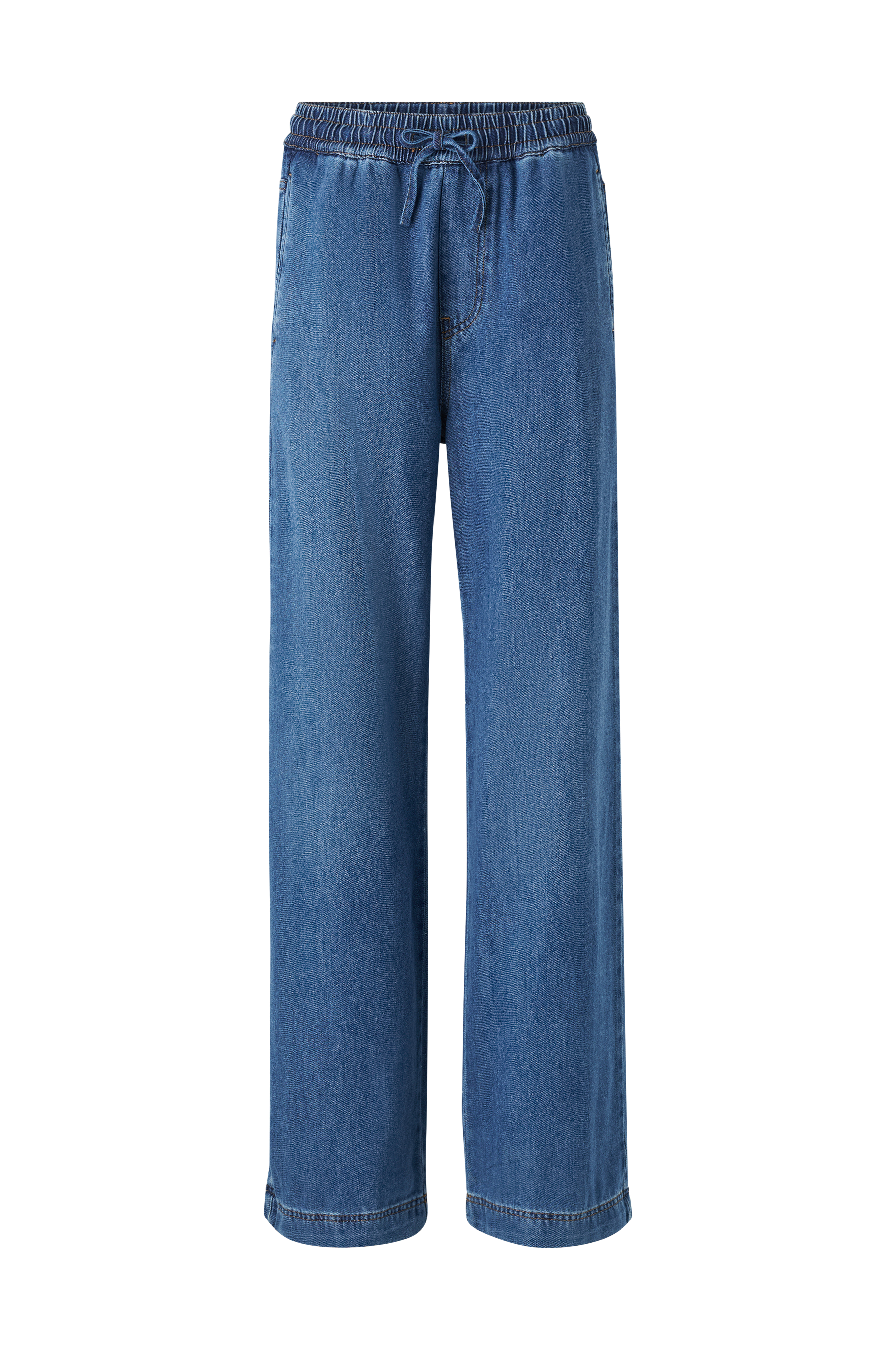 • Jeans med høj talje• Brede ben• Normalhøj, elastisk talje med træksnørre• Sidelommer