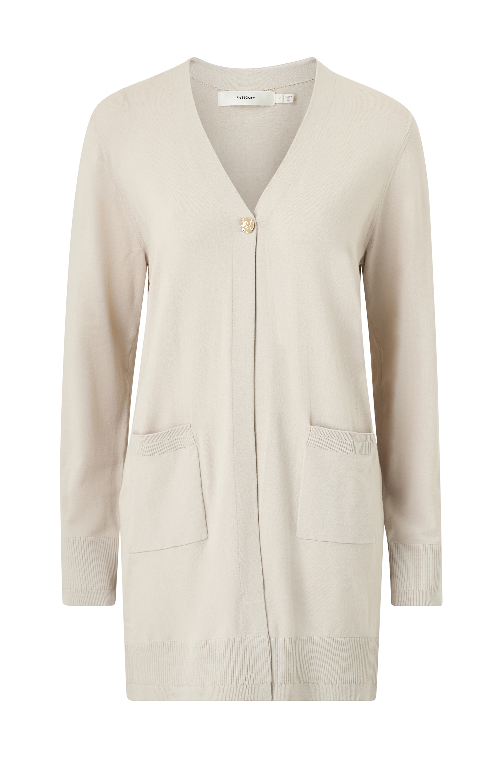 • Lang, blød cardigan• V-udskæring• Lange ærmer• Knaplukning• To lommer