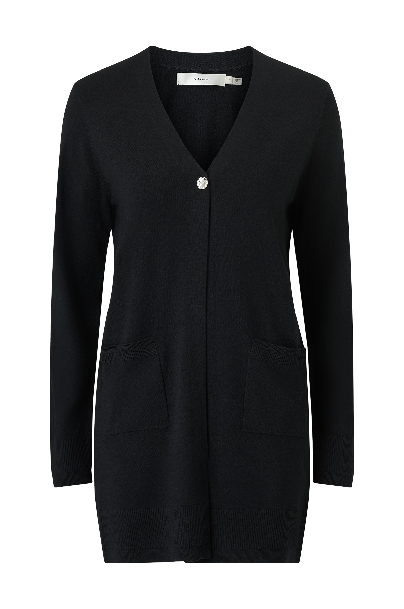 • Lang, blød cardigan• V-udskæring• Lange ærmer• Knaplukning• To lommer