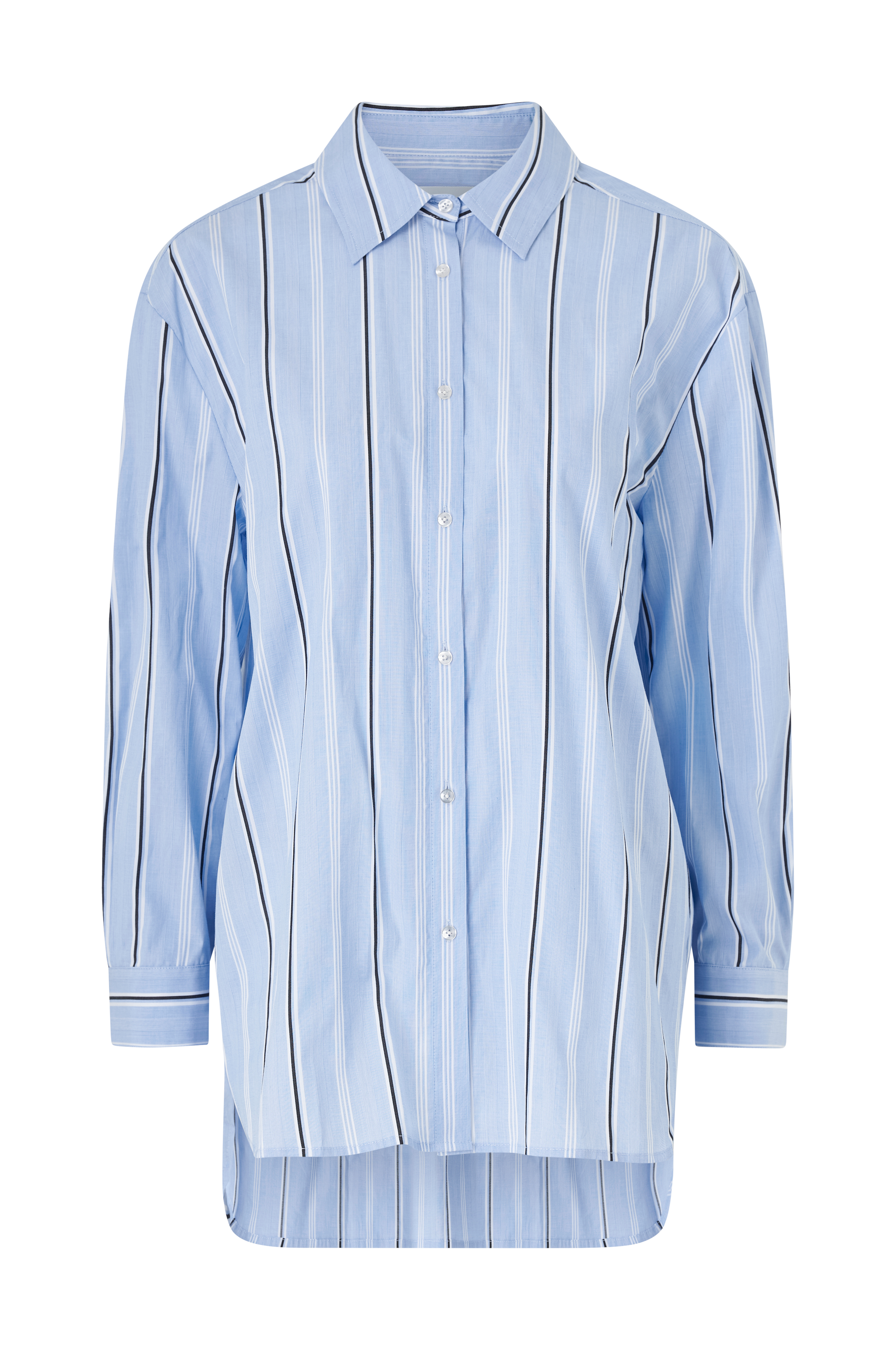 • Stribet skjorte i bomuld• Manchet med en knap• Ventilation nede i siderne• Længere bagside