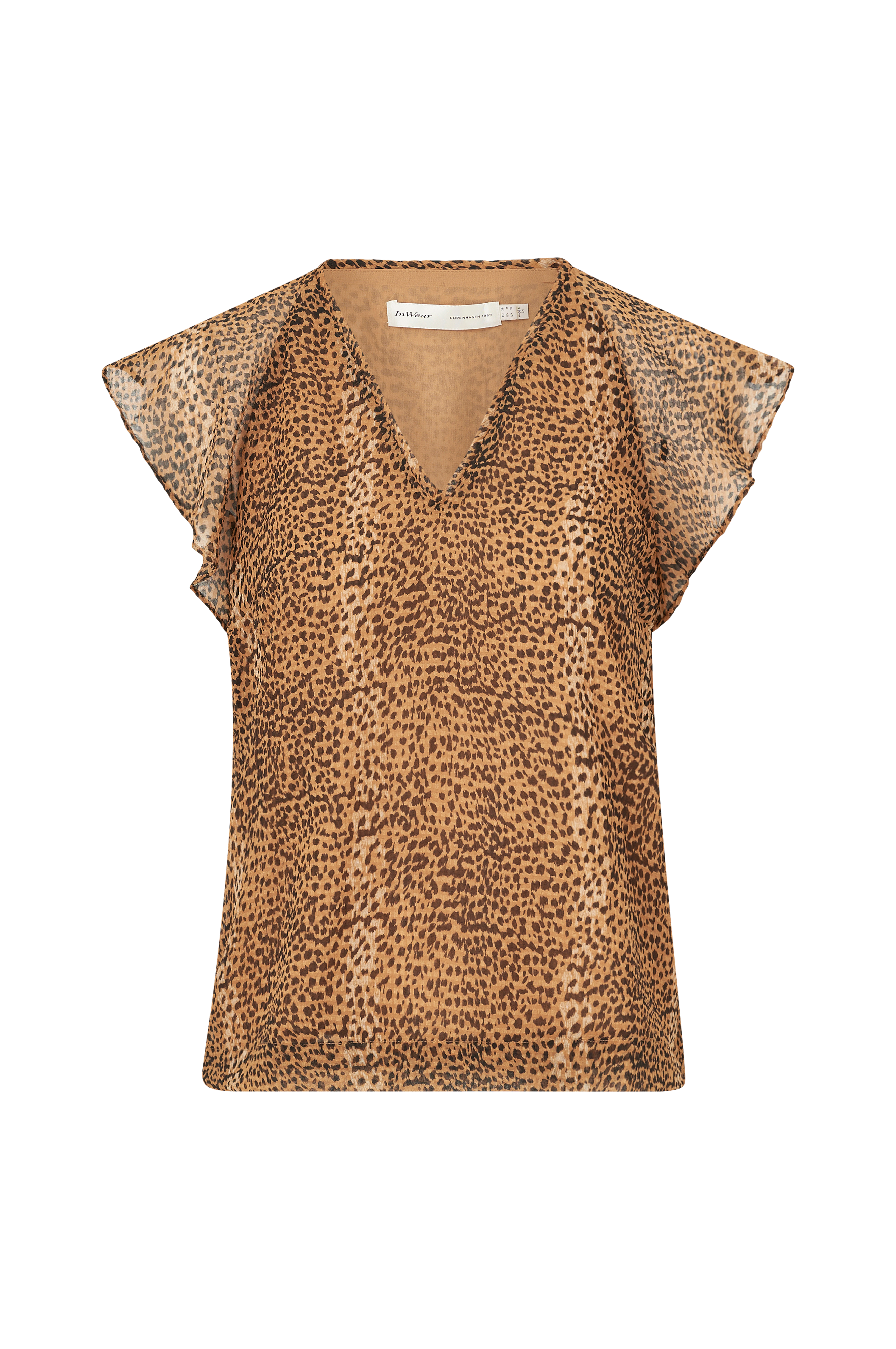 Top TanyaIW Top fra InWear. Lige model med V-formet halsudskæring som har lille påsyet kant og raglanskåret, klokkeformet ærme. Mønstret, vævet chiffon med vævet for.