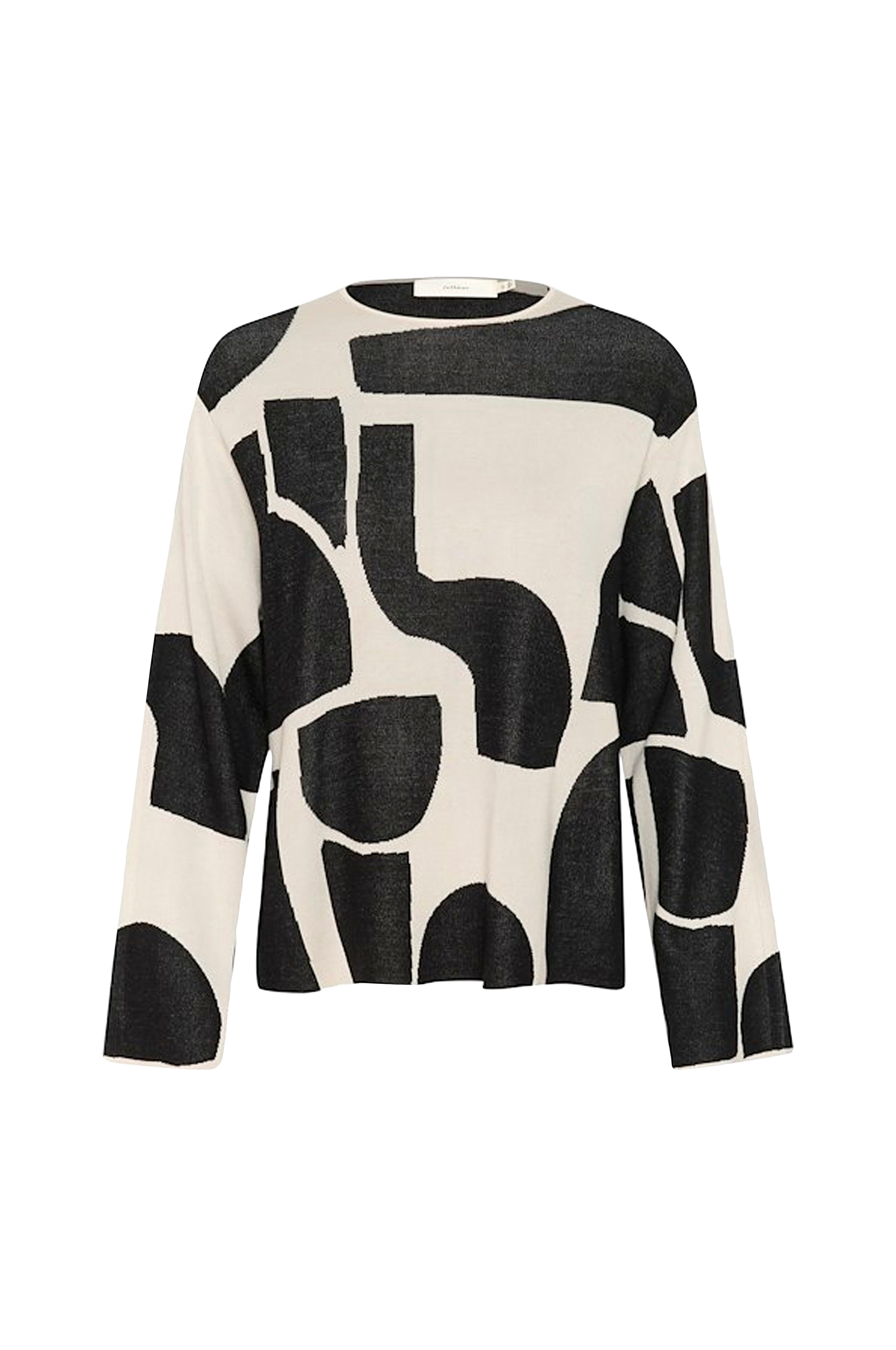• Lang, mønsterstrikket model• Rund hals• Langt, lige ærme• Ventilation nede i siderne