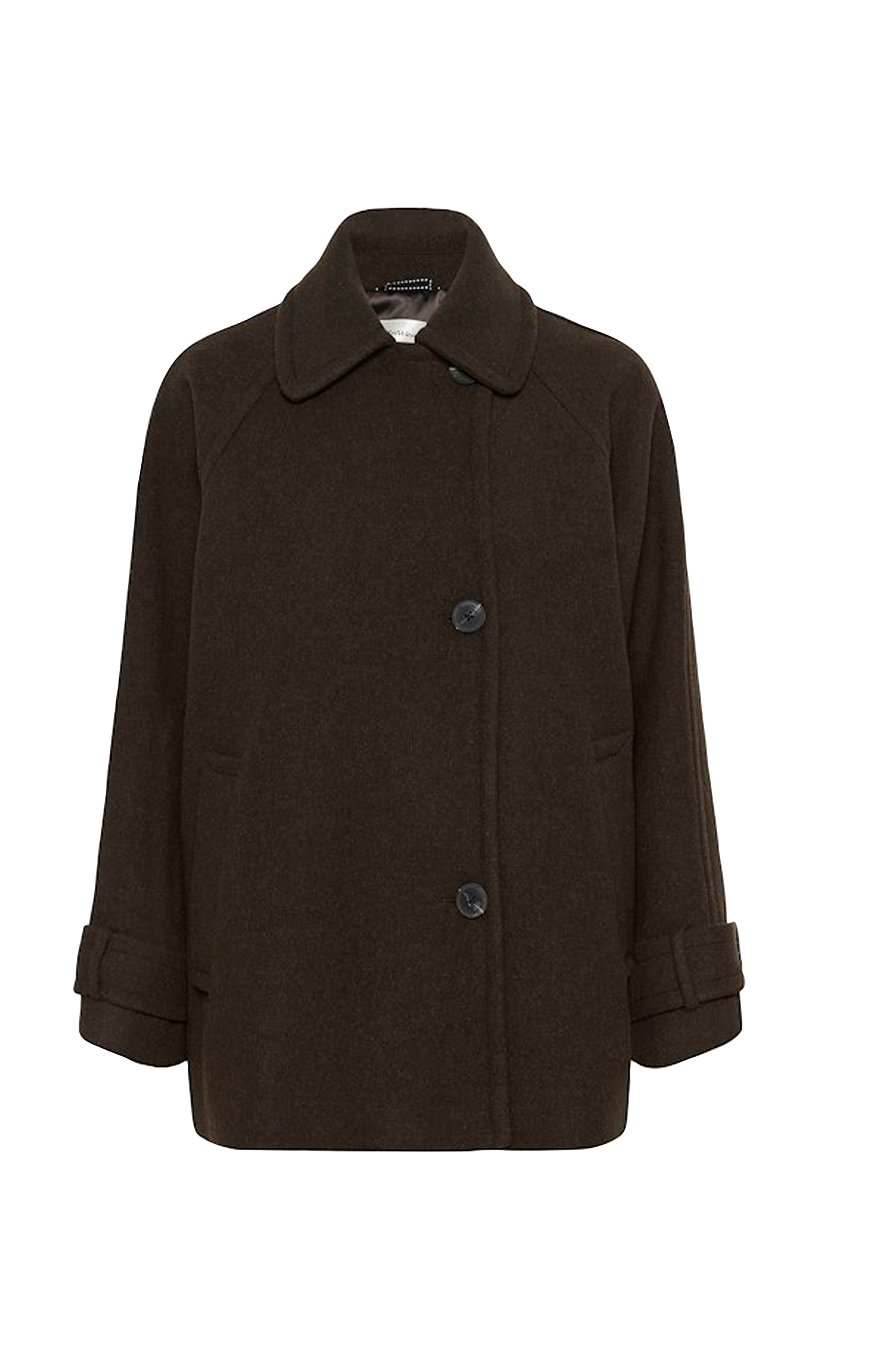 • Frakke i uldblanding• Krave• Justérbare ærmeafslutninger• Knaplukning• Tekstilforing• Sidelommer• Længde: 71 cm i størrelse 36