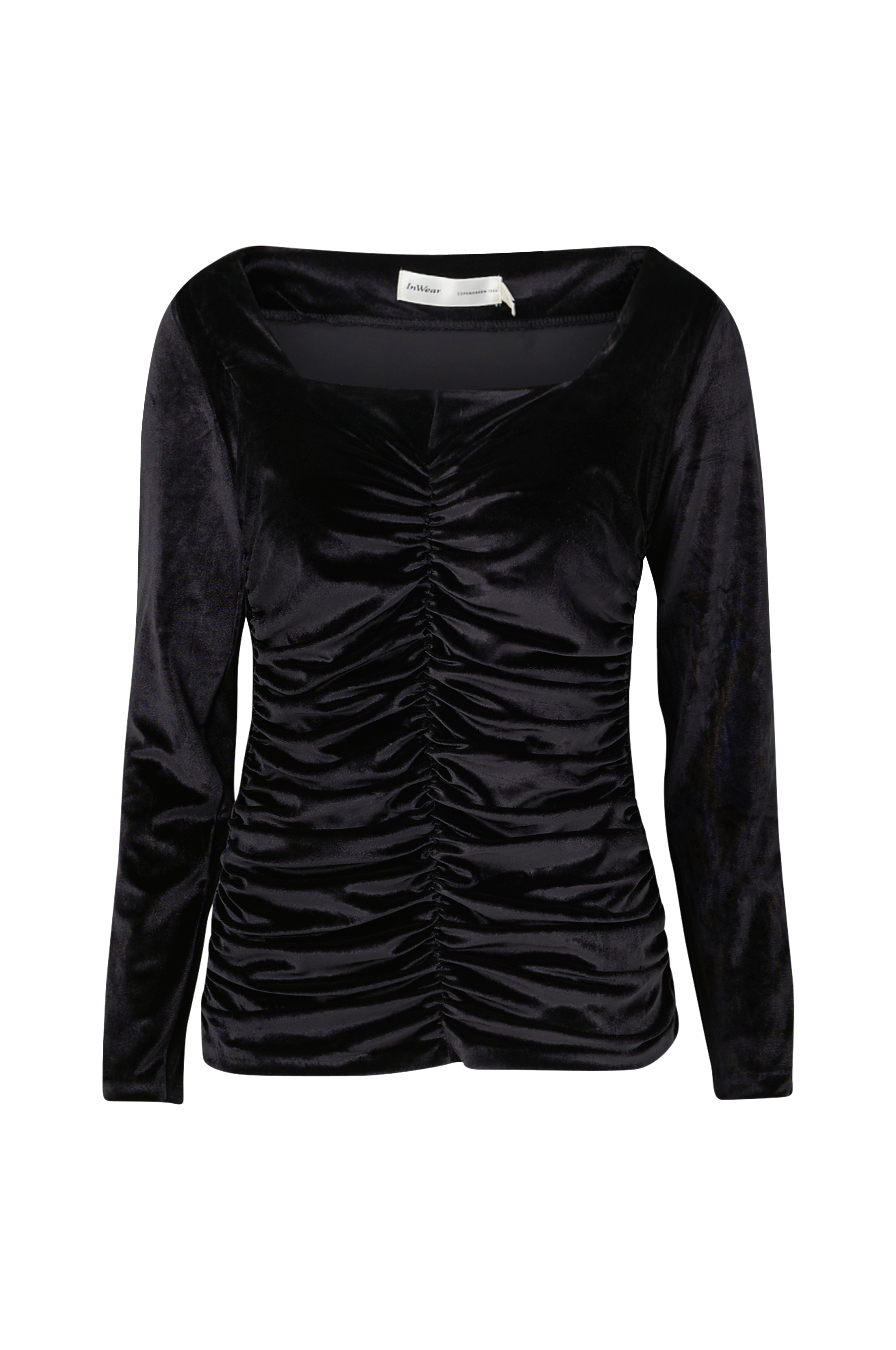 Velourtop FarylIW Blouse fra InWear. Kropsnær model med elastiske draperingssømme foran. Vid halsudskæring og lange ærmer.