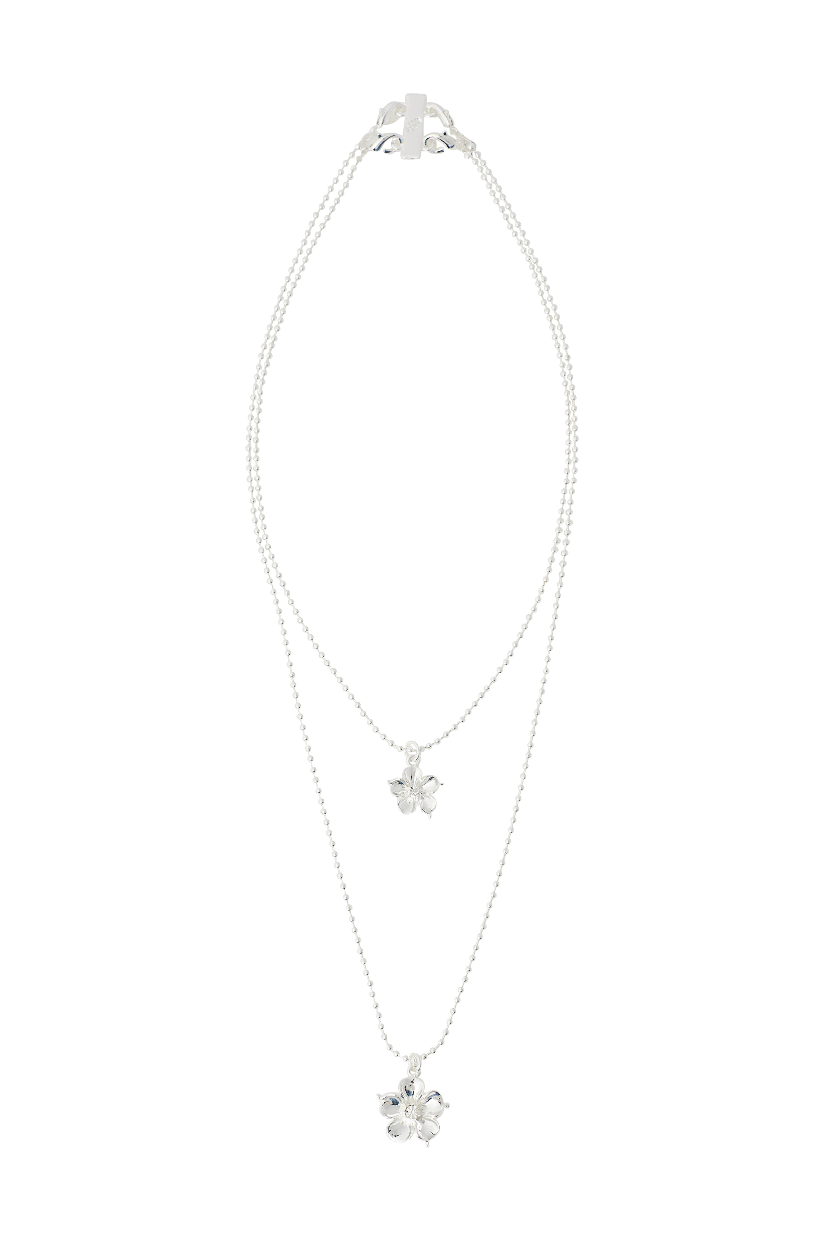 • 18K guldbelægninge, sterling sølvbelagte kæder i messing med blomsterformede vedhæng• Nikkelfri• Længde 57 cm, vedhæng Ø 2 cmLængde 41 cm, vedhæng Ø 1,5 cm