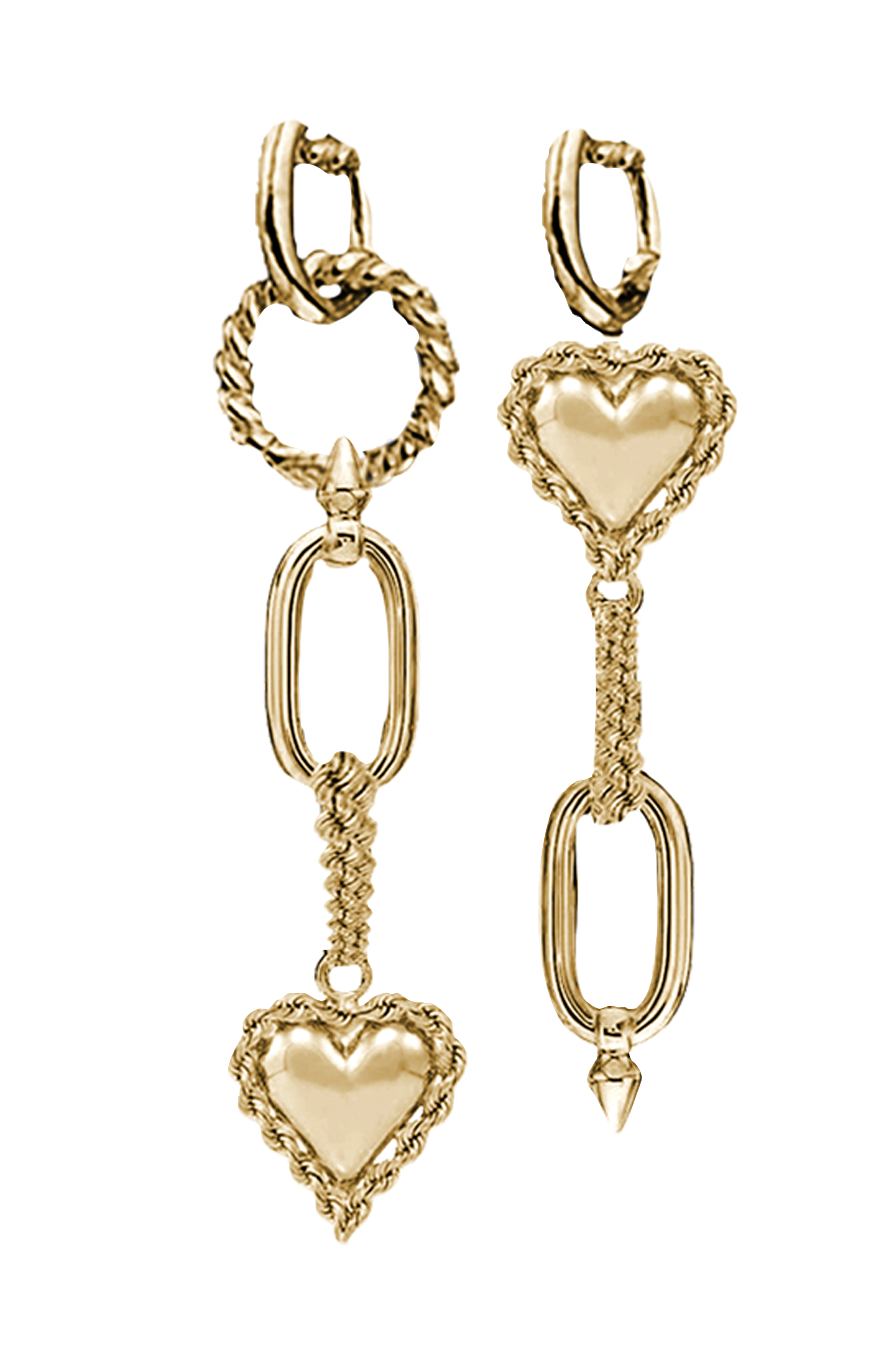 • Kreoler med dekorative, afrundede detaljer og hjerteformet hængesmykke• Fremstillet af 18K guldbelægningt stål• Fremstillet af sølvbelagt rustfrit stål