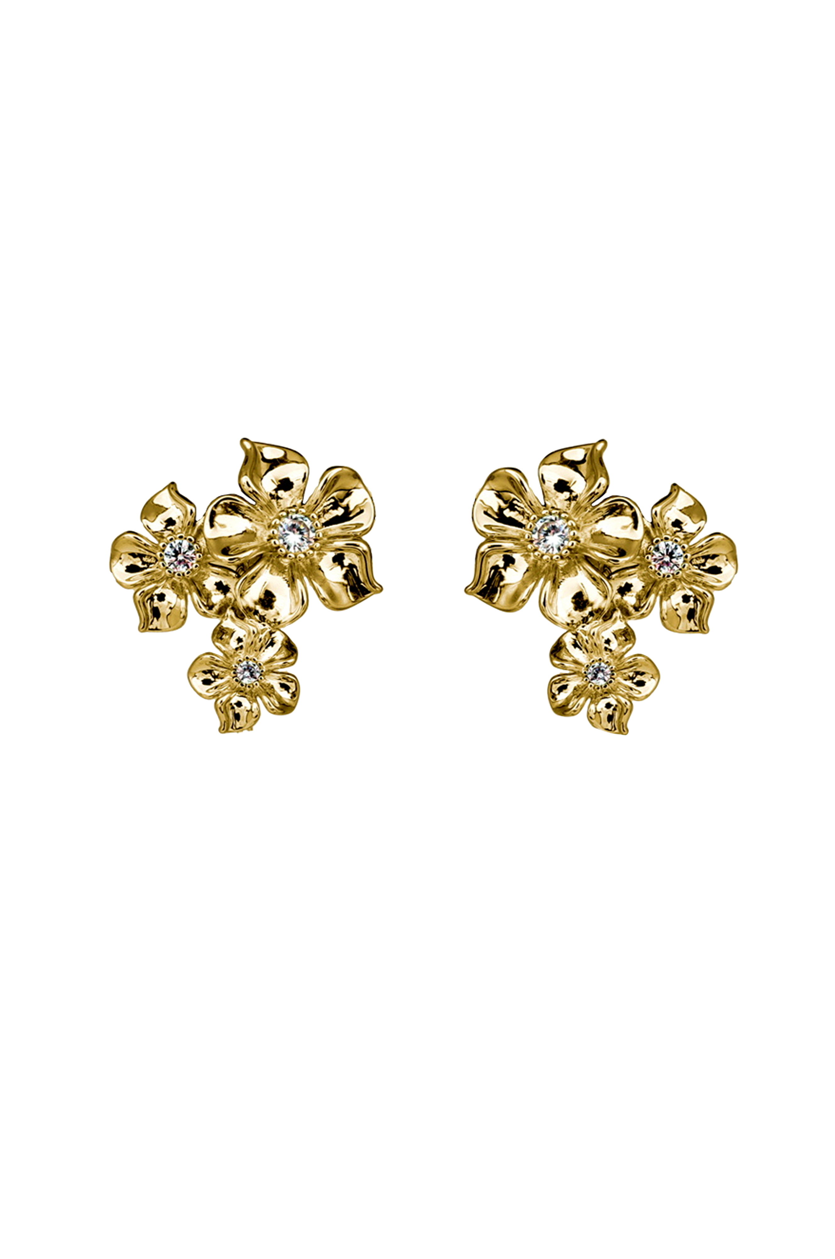 • 18K guldbelægning, sterling sølvbelagt stiftmodel i rustfrit stål med blomstermønster og små krystaller• Nikkelfri• Størrelse 2,3 x 2,3 cm