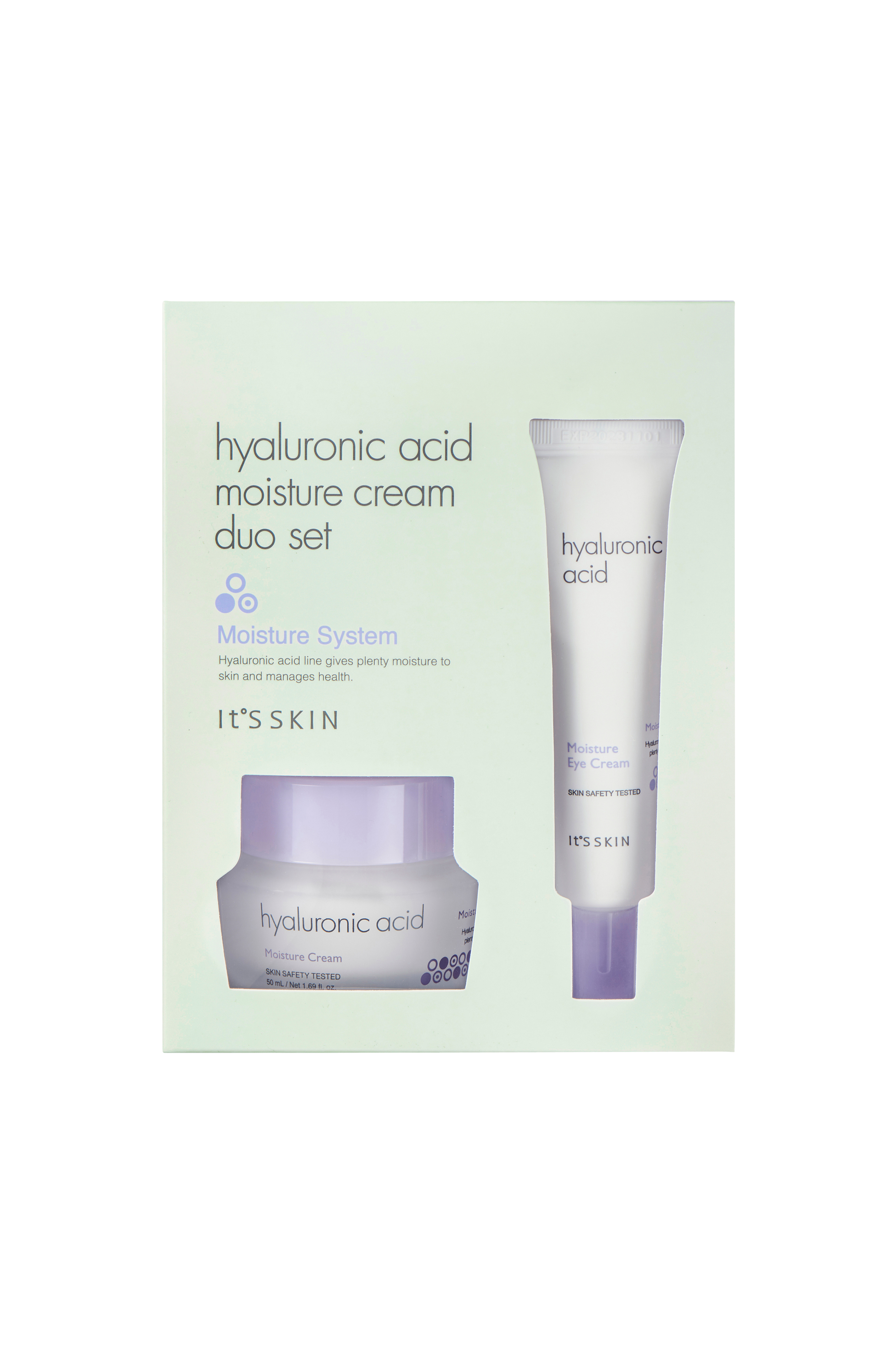 1. Ansigtscreme med koncentreret hyaluronsyre. Hyaluronsyre er en naturlig substans i huden som har en fantastisk evne til at binde store mængder fugt. Genopliver, blødgør, opstrammer og genopretter hudens pH-balance. Absorberes hurtigt og efterlader huden friskere. Dermatologisk testet og helt uden parabener. 2. Opstrammende øjencreme med koncentreret hyaluronsyre. Hyaluronsyre er en naturlig substans i huden som har en fantastisk evne til at binde store mængder fugt. Genopliver, blødgør, opstrammer og genopretter hudens pH-balance. Absorberes hurtigt og efterlader huden friskere. Dermatologisk testet og helt uden parabener.
