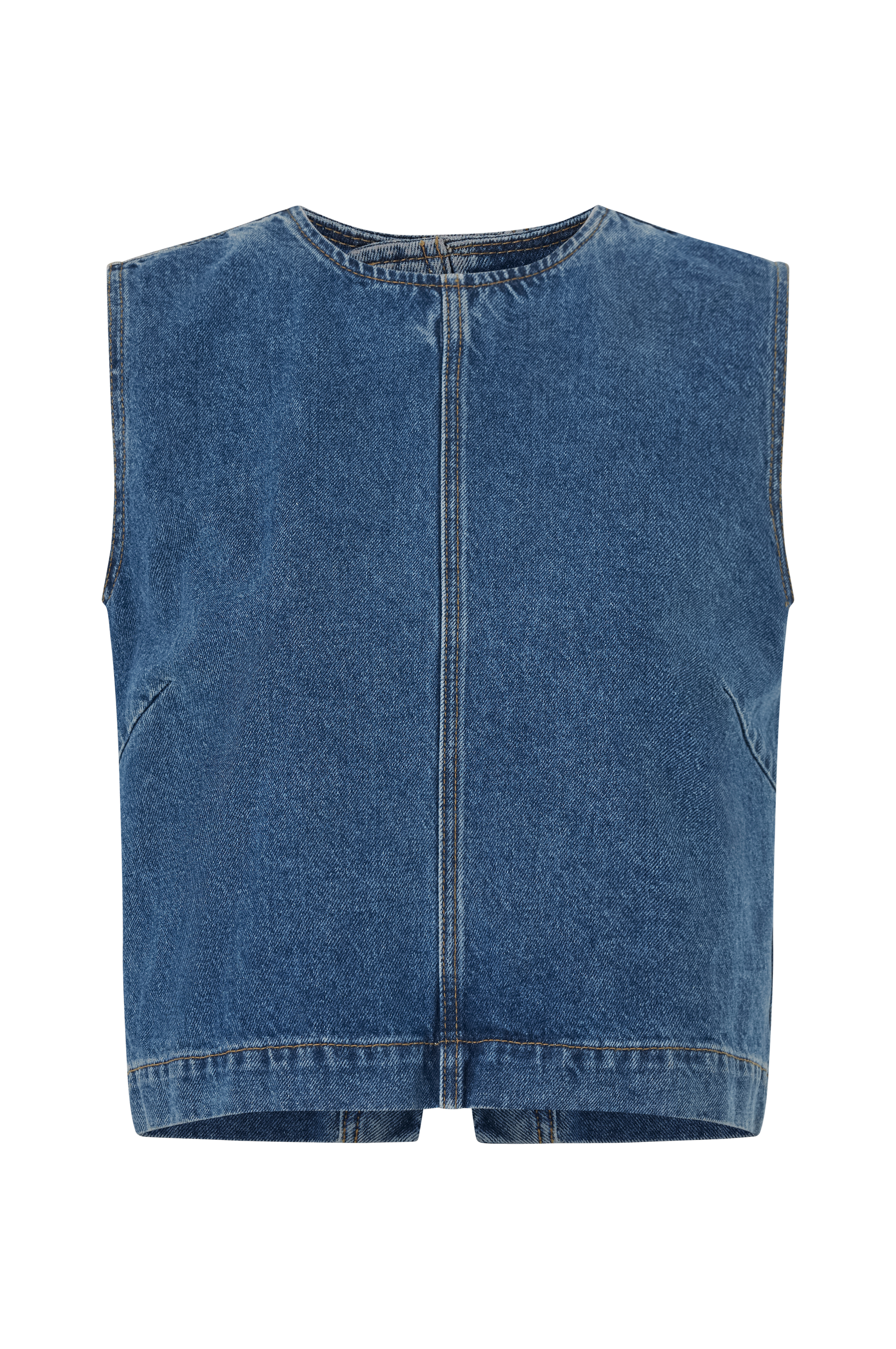 • Denimvest i bomuldsdenim• Lukning på toppen med en knap