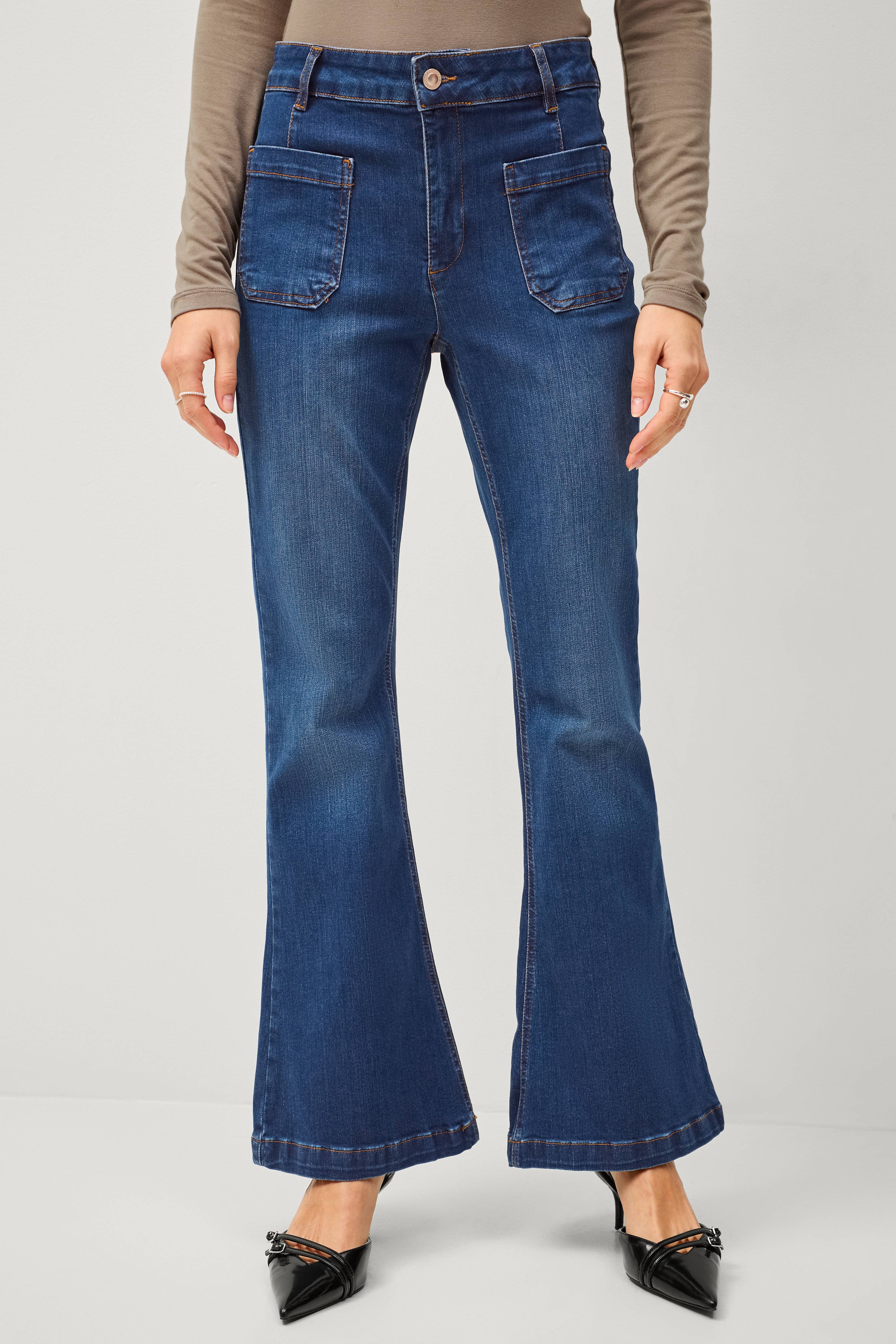 Modellen er 174 cm høj og bærer en str. W27/L30