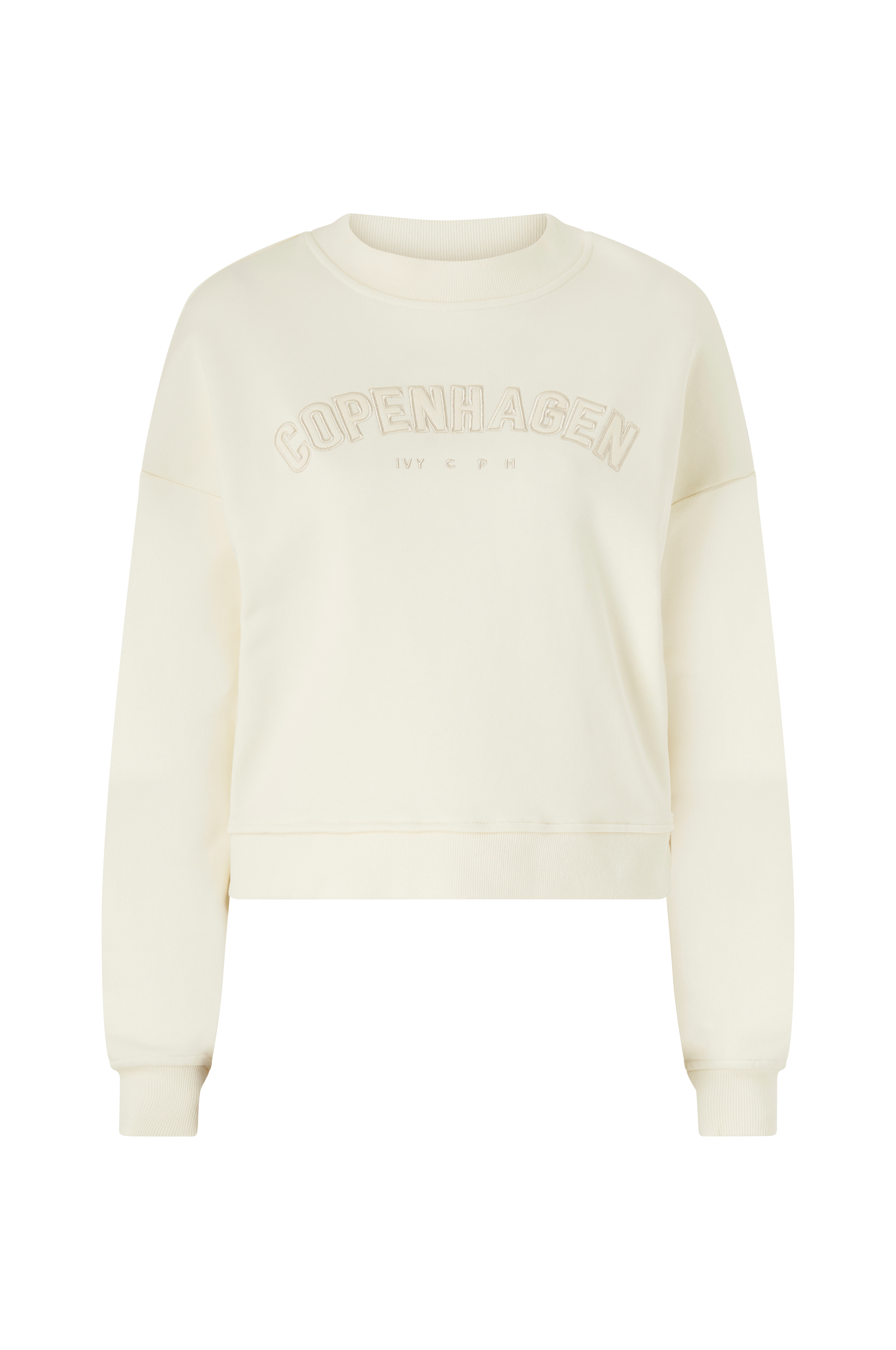 • Oversize model• Rund halsudskæring• Nedsænket skulder• Ribmanchet ved manchetterne, nederst og i halsen• Broderet tryk foran