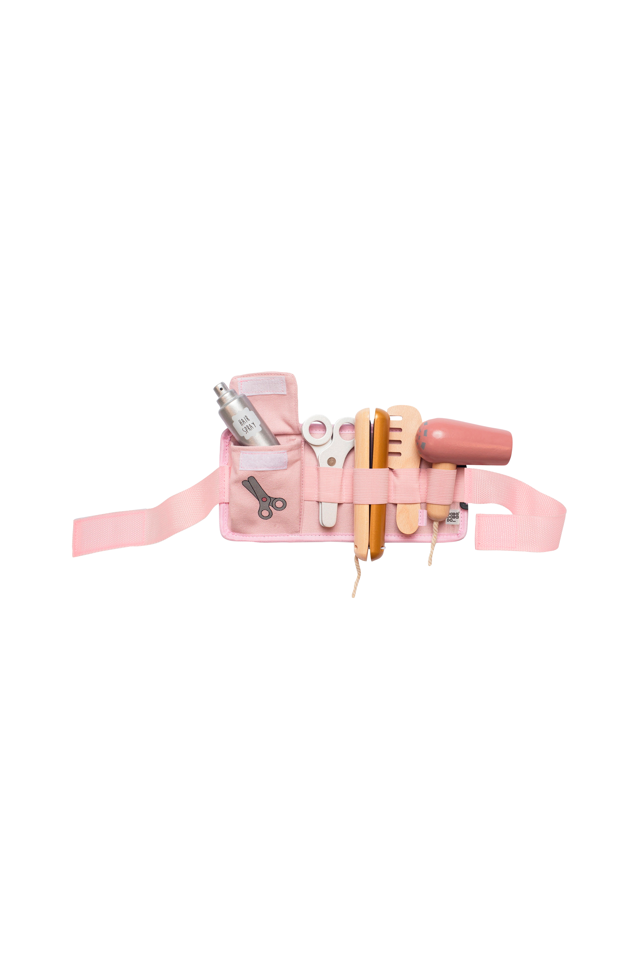 Nu kan dit barn åbne sin egen frisørsalon med dette sæt fra Jabadabado! Her er alt, hvad der skal til for at klippe og style familiemedlemmernes, vennernes eller dukkernes hår. Dit barn kan bruge kam, saks, føntørrer, glattejern og hårspray. Sæt håret fast med clips og hårbånd. Alle redskaber er samlet i et praktisk bælte.