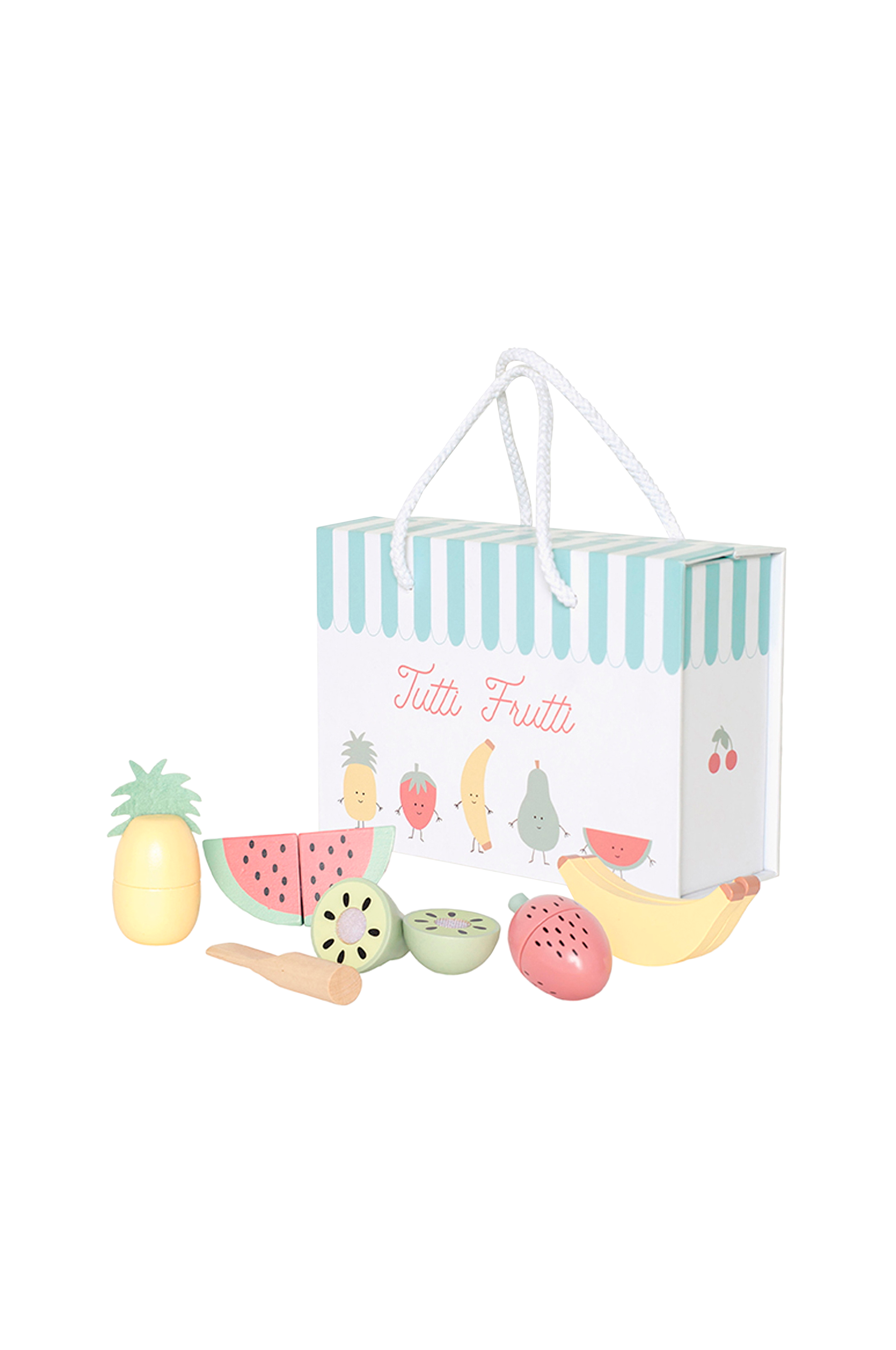 Hvem vil ha' frugtsalat? Tilbered en superlækker dessert med skønne frugter. Alle frugter kan deles med den tilhørende kniv.