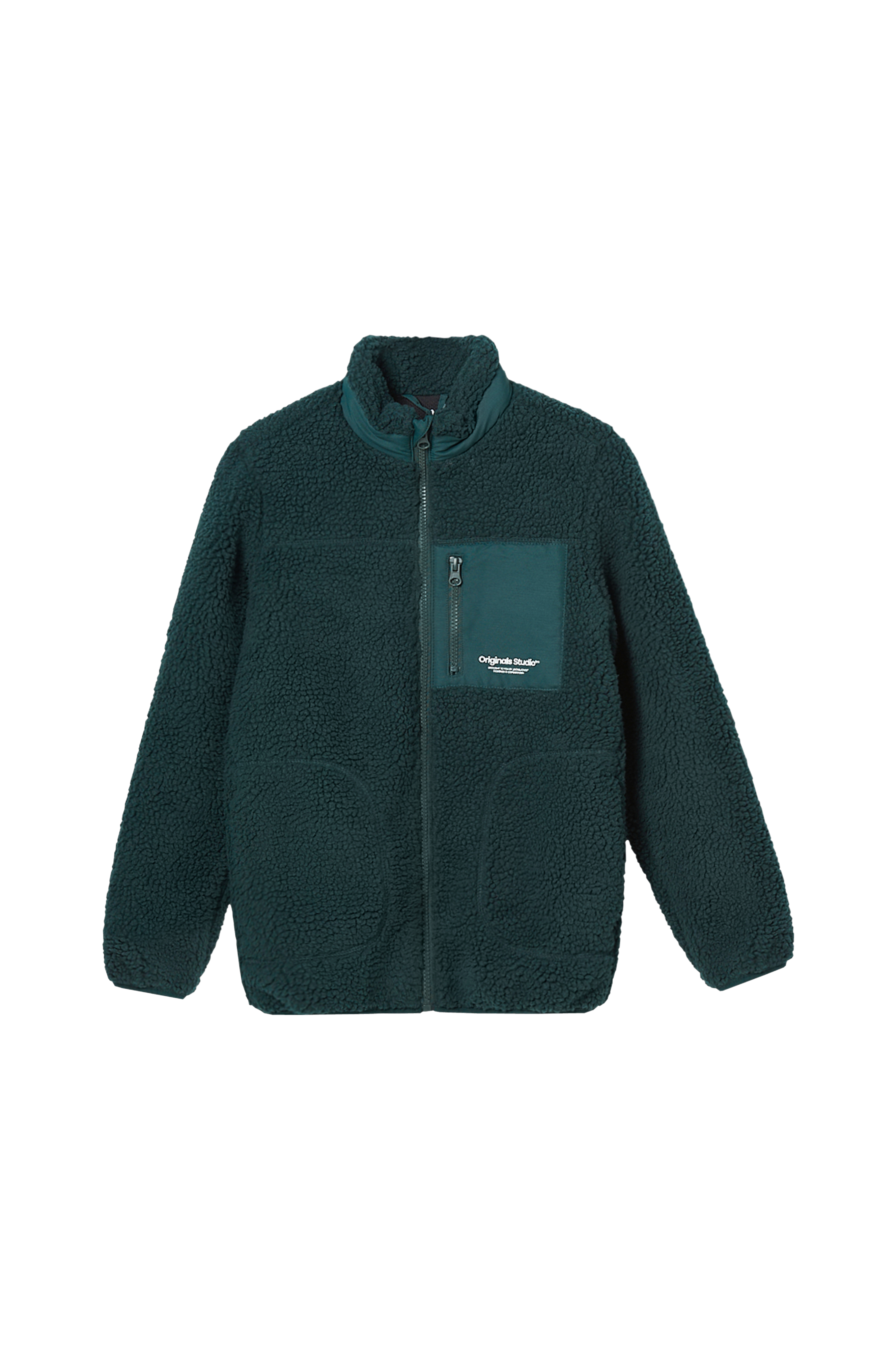 • Jakke i varm bamsefleece• Høj krave• Lynlås• Sidelommer• Vævet brystlomme med lynlås• Elastiske båndkanter ved ærmeafslutningerne og ved nederste kant