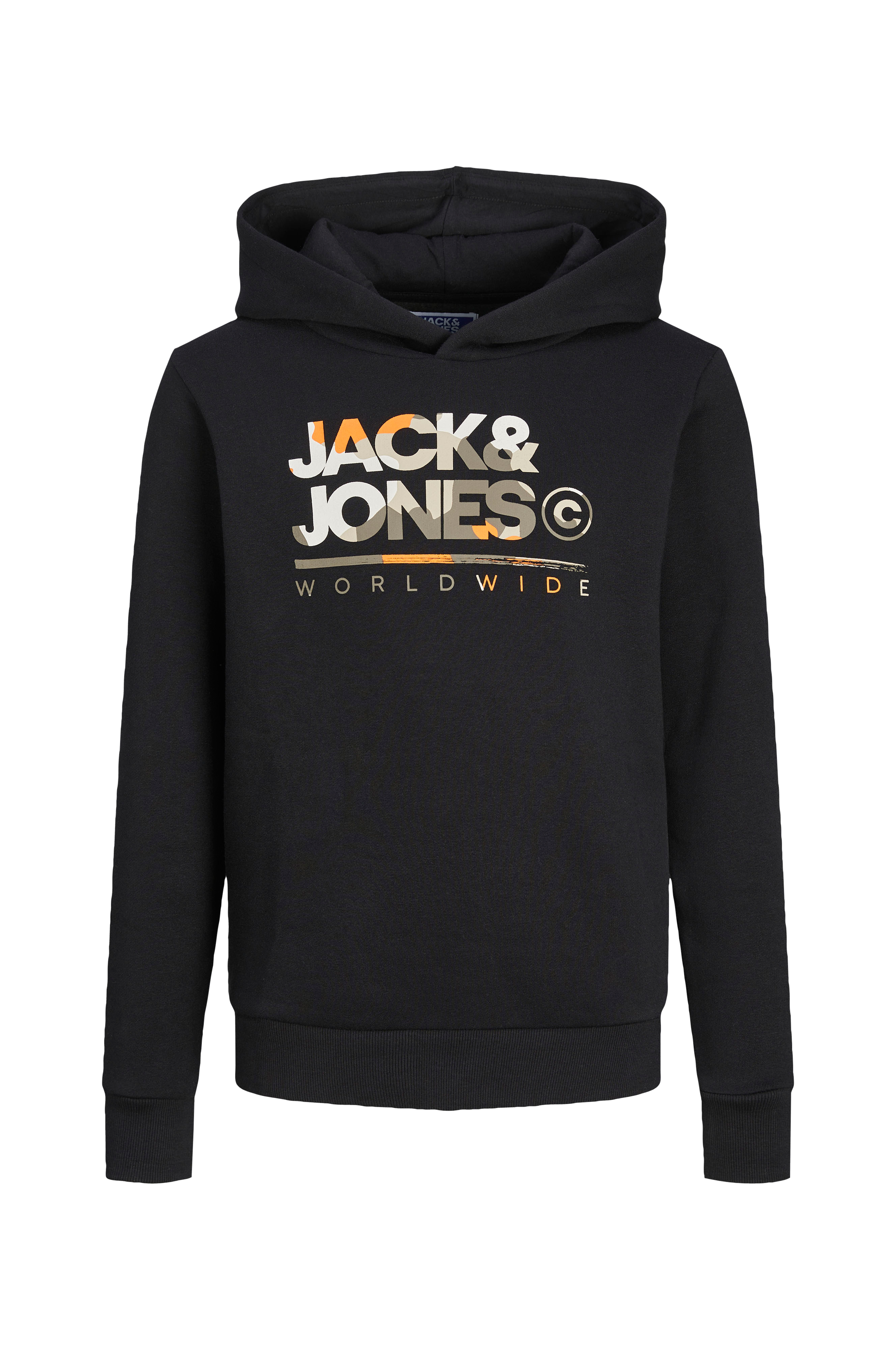 • Lige model• Børstet inderside• Stort tryk på brystet• Foret hætte• Stor lomme på maven• Ribmanchet ved manchetterne og nederst
