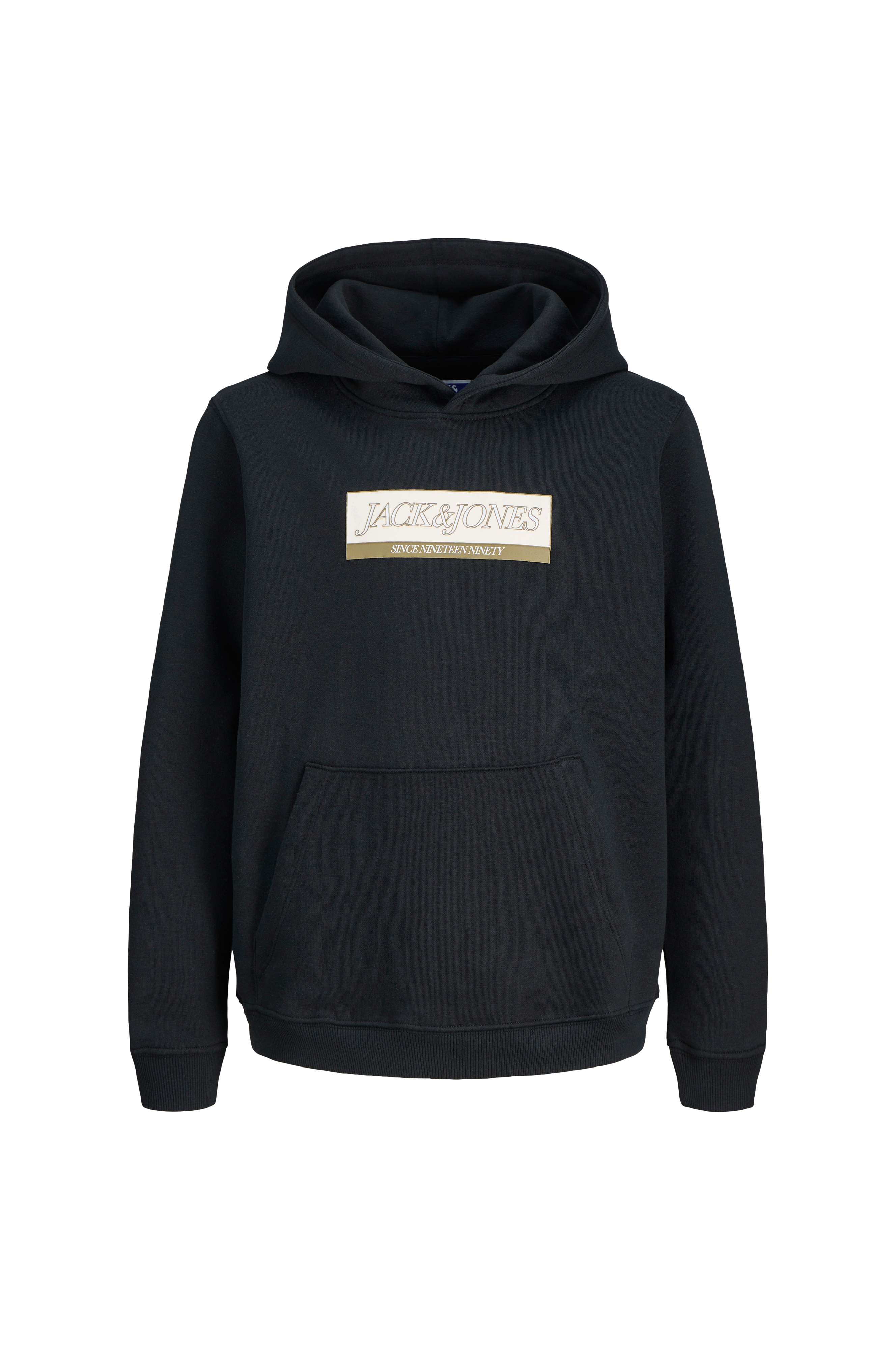 • Hættetrøje med tryk• Lange ærmer• Ribmanchet ved manchetterne• Ribbet søm• Normal pasform