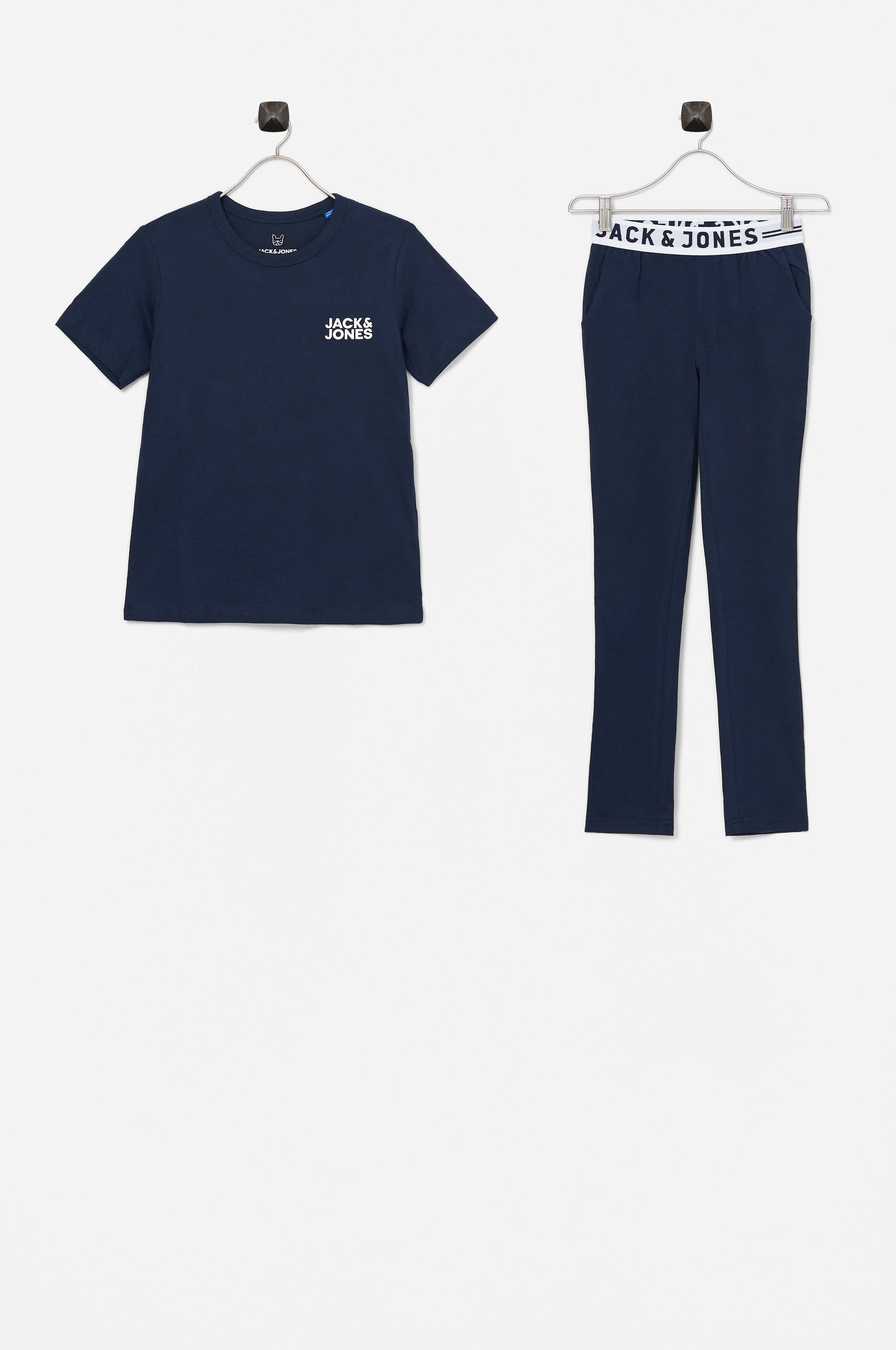 Pyjamas med T-shirt og bukser i blød stretchjersey. T-shirten har rund halsudskæring og bukserne elastik talje.