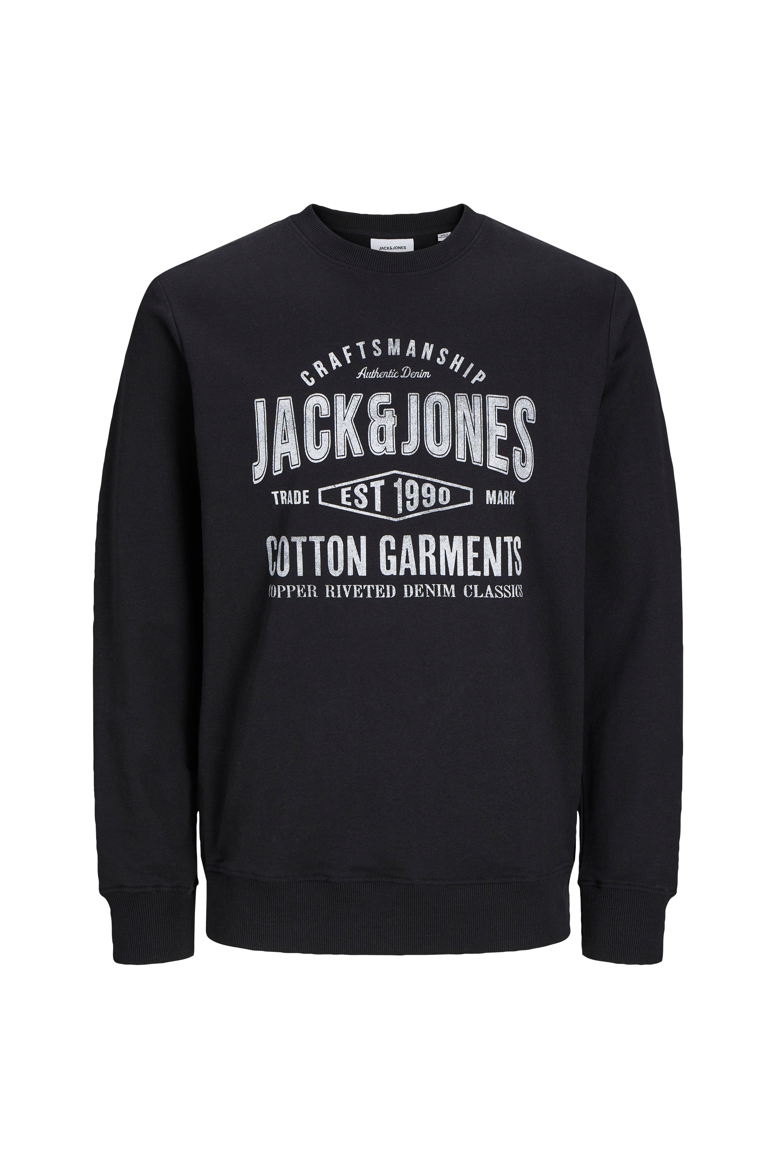 • Lige model• Halsudskæring med ribstrikket kant• Tryk foran• Ribmanchet ved manchetterne og nederst