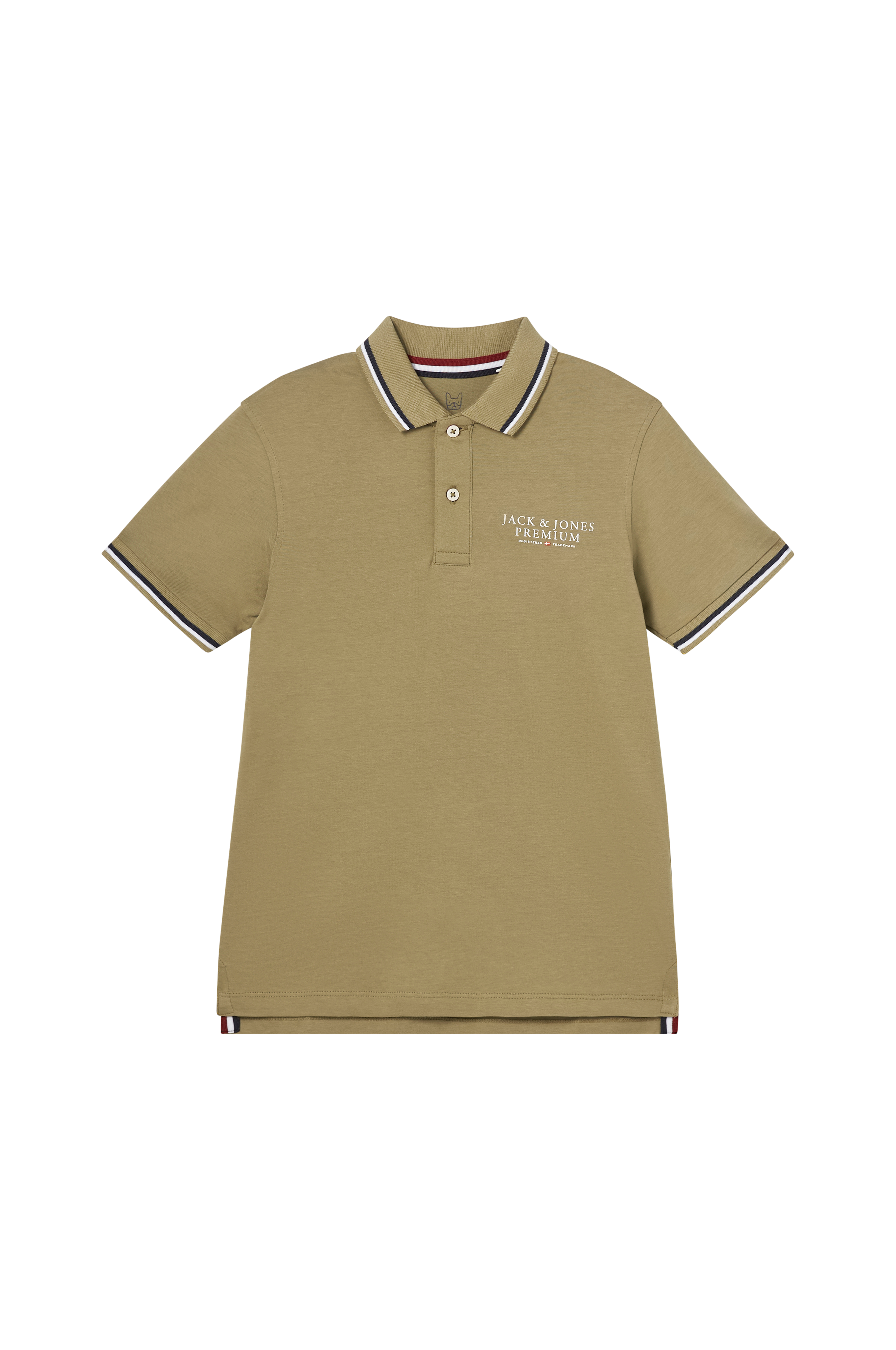 • Fremstillet af bomuld• Ribbet krave• To knapper• Tryk på brystet• Ribkanter ved ærmeafslutningerne• Ventilation nede i siderne