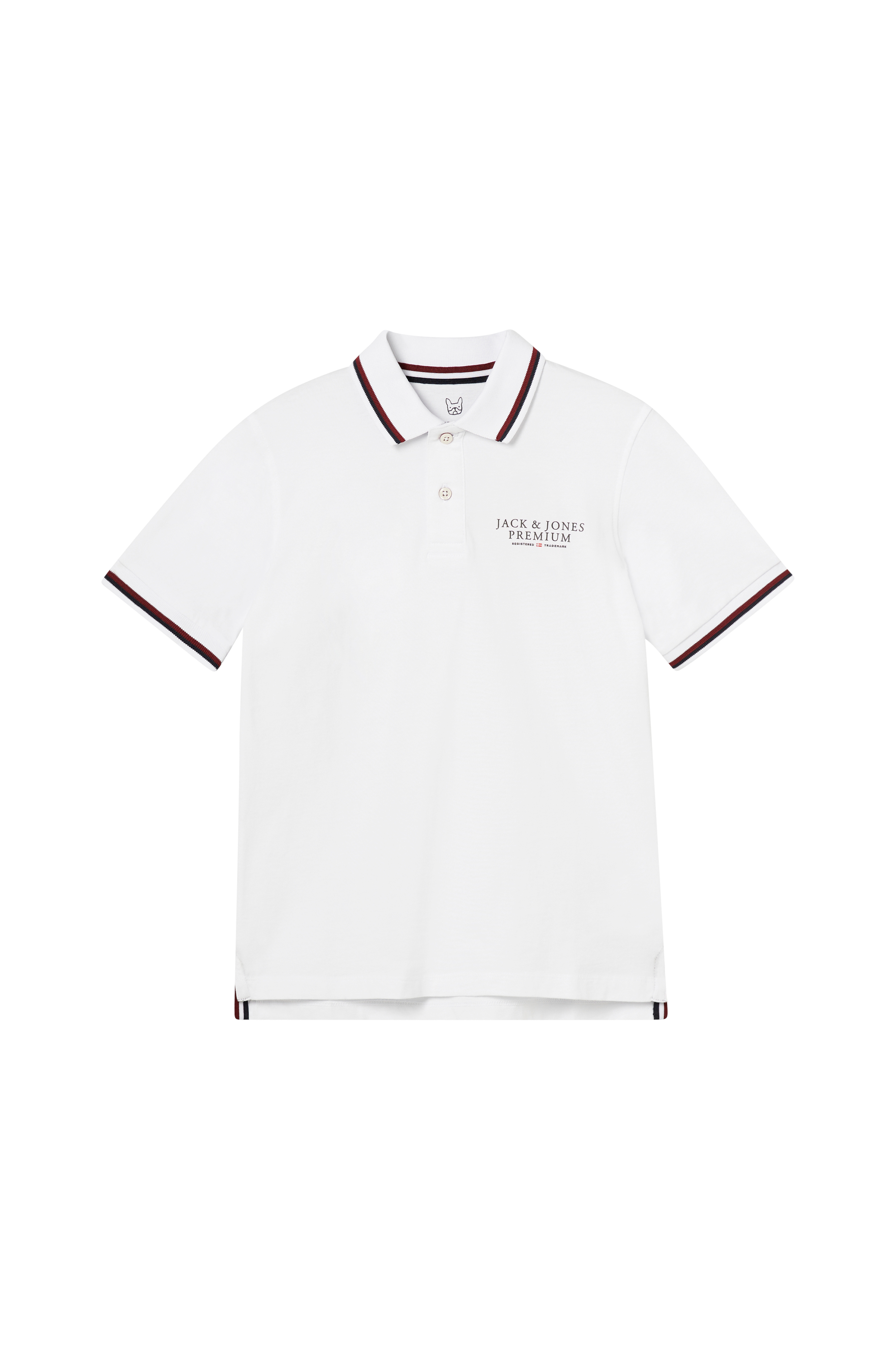• Fremstillet af bomuld• Ribbet krave• To knapper• Tryk på brystet• Ribkanter ved ærmeafslutningerne• Ventilation nede i siderne
