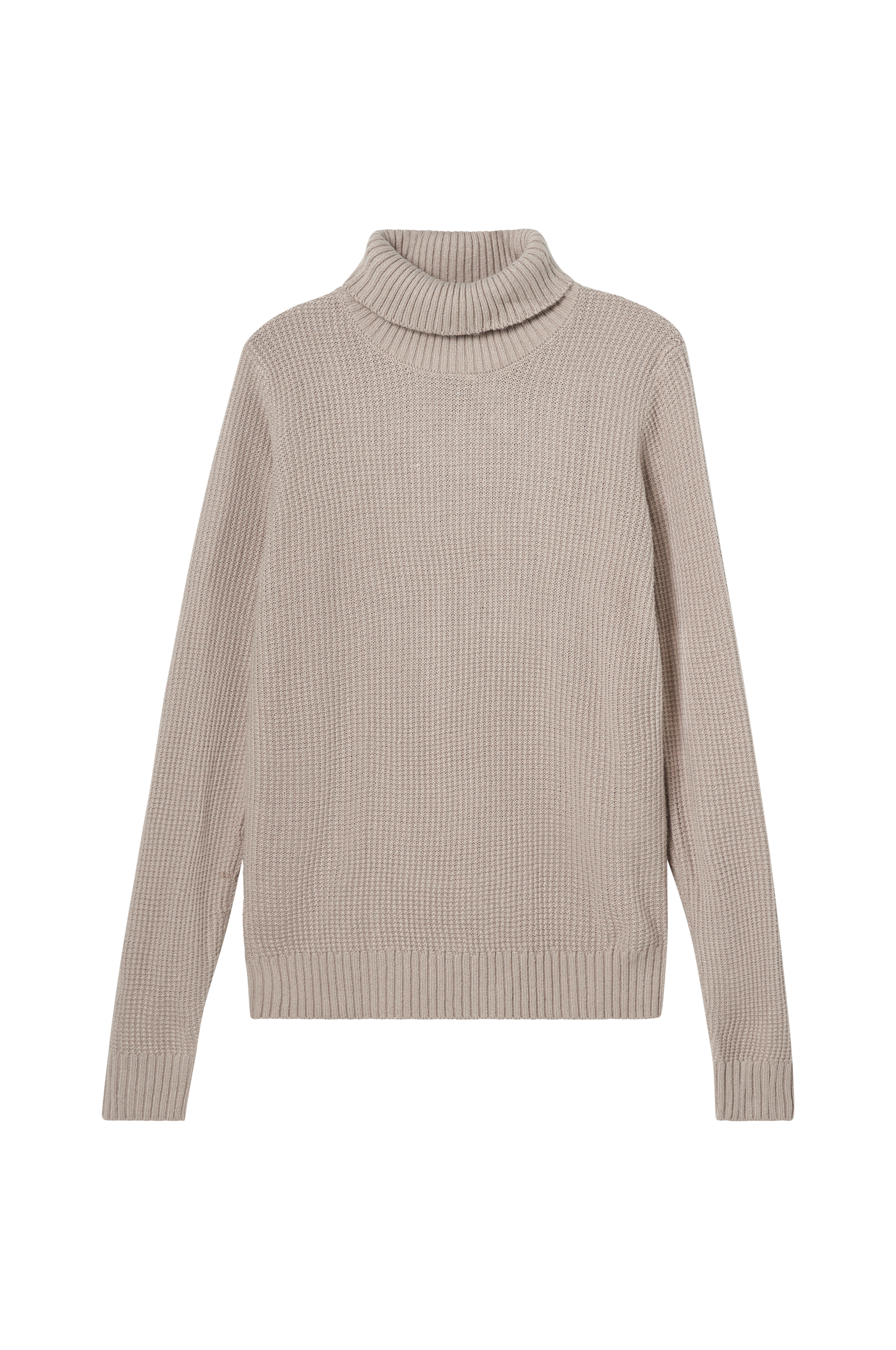 • Strukturstrikket trøje• Ribstrikket turtleneck• Ribbede kanter ved manchetterne og nederst