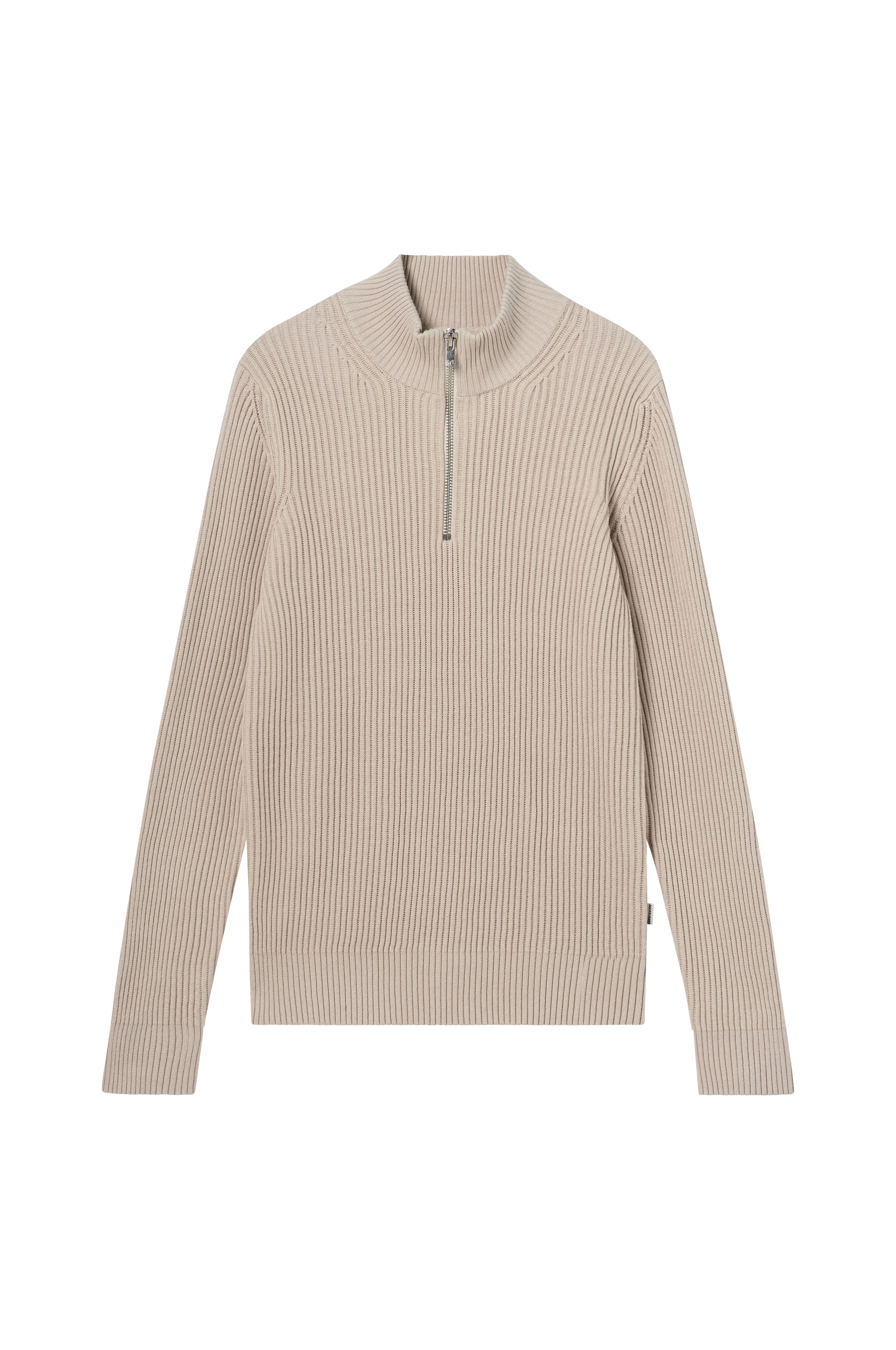 • Ribstrikket trøje i bomuldsblanding• Opretstående krave• Kort lynlås