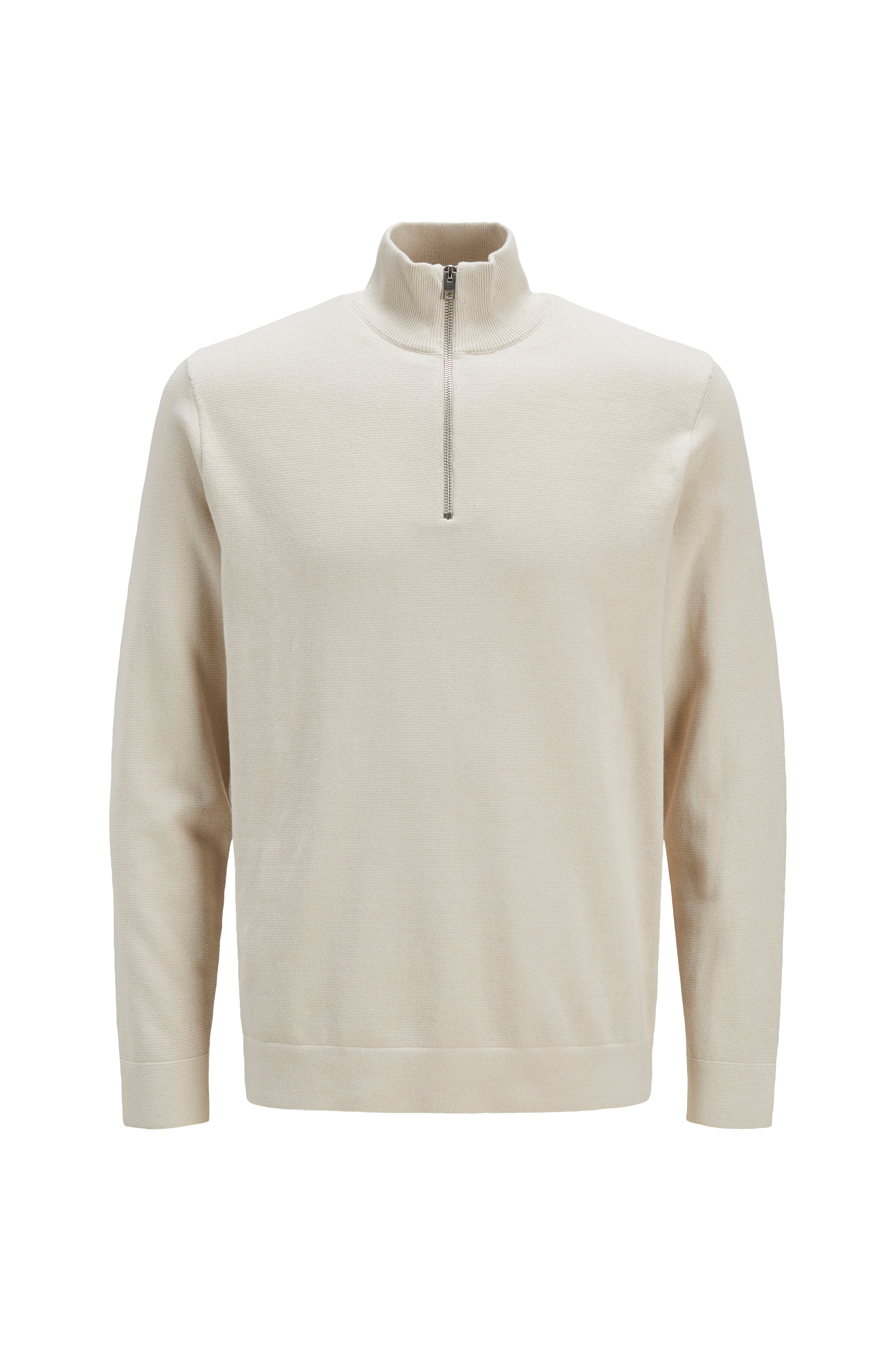 • Strikket trøje med høj, ribbet halsudskæring• Kort lynlås• Ribstrik ved manchetterne og nederst