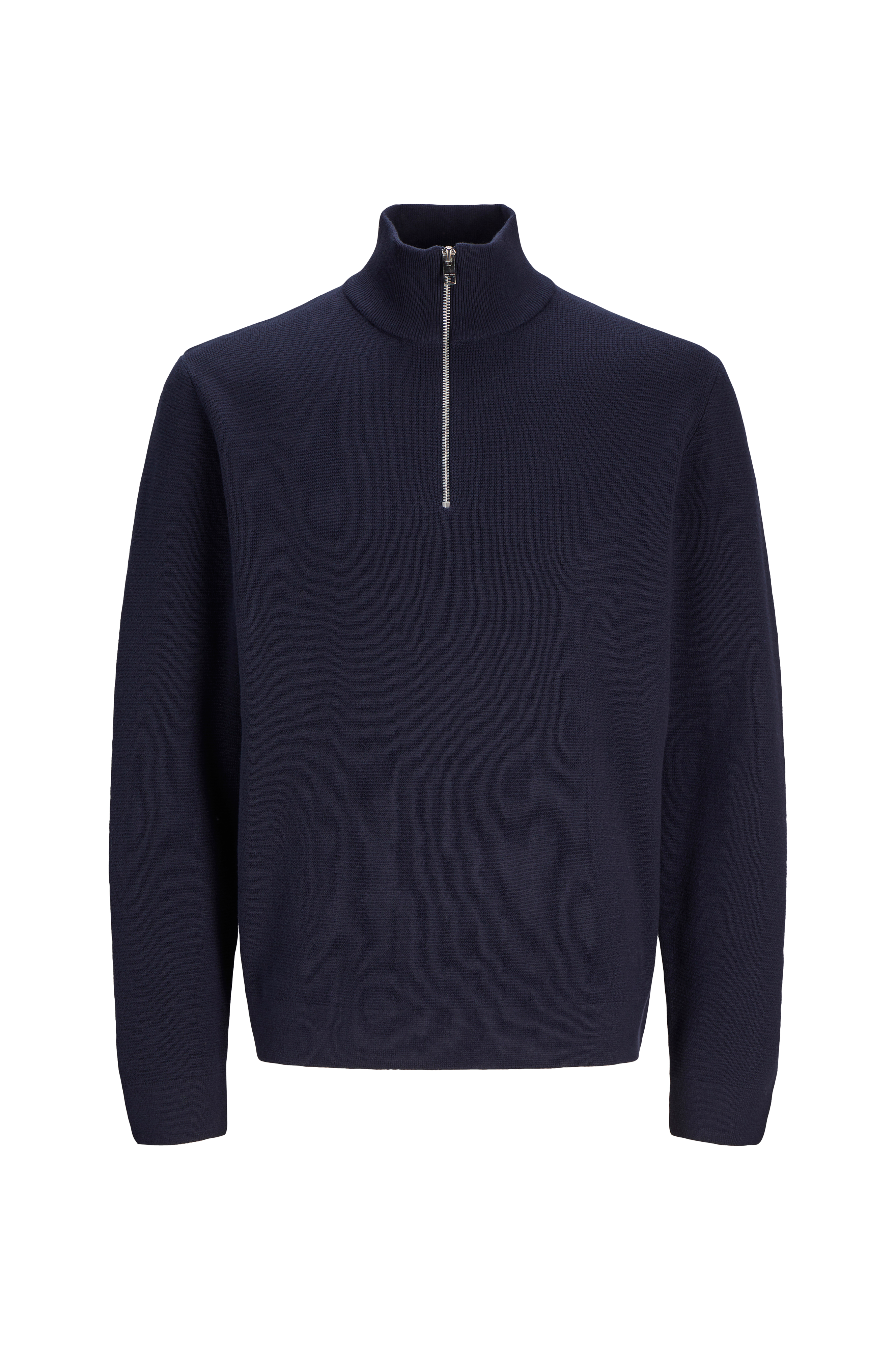• Strikket trøje i bomuld med let struktur• Ribbet opretstående krave• Kort lynlås• Ribmanchetter ved manchetterne