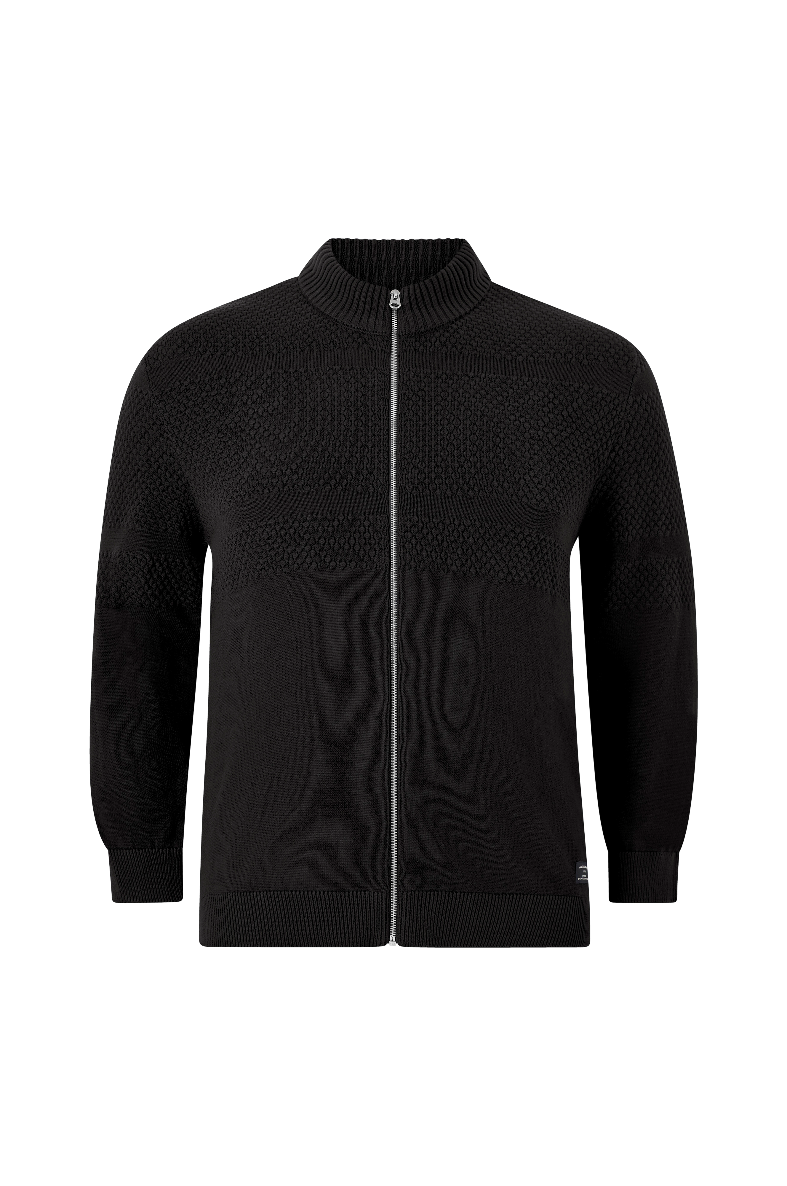 • Strikket cardigan med mønstrede og ensfarvede strikpartier