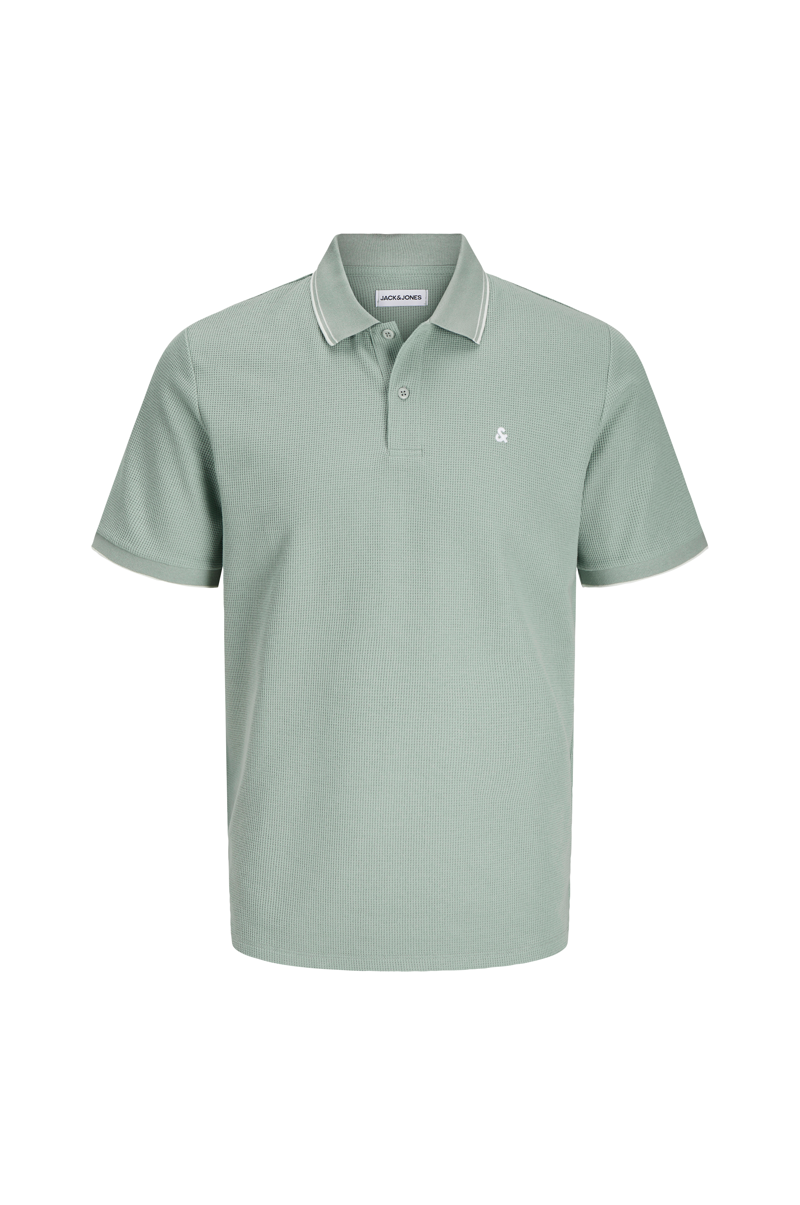 • Ribstrikket krave• To knapper• Ribkanter ved ærmeafslutningerne
