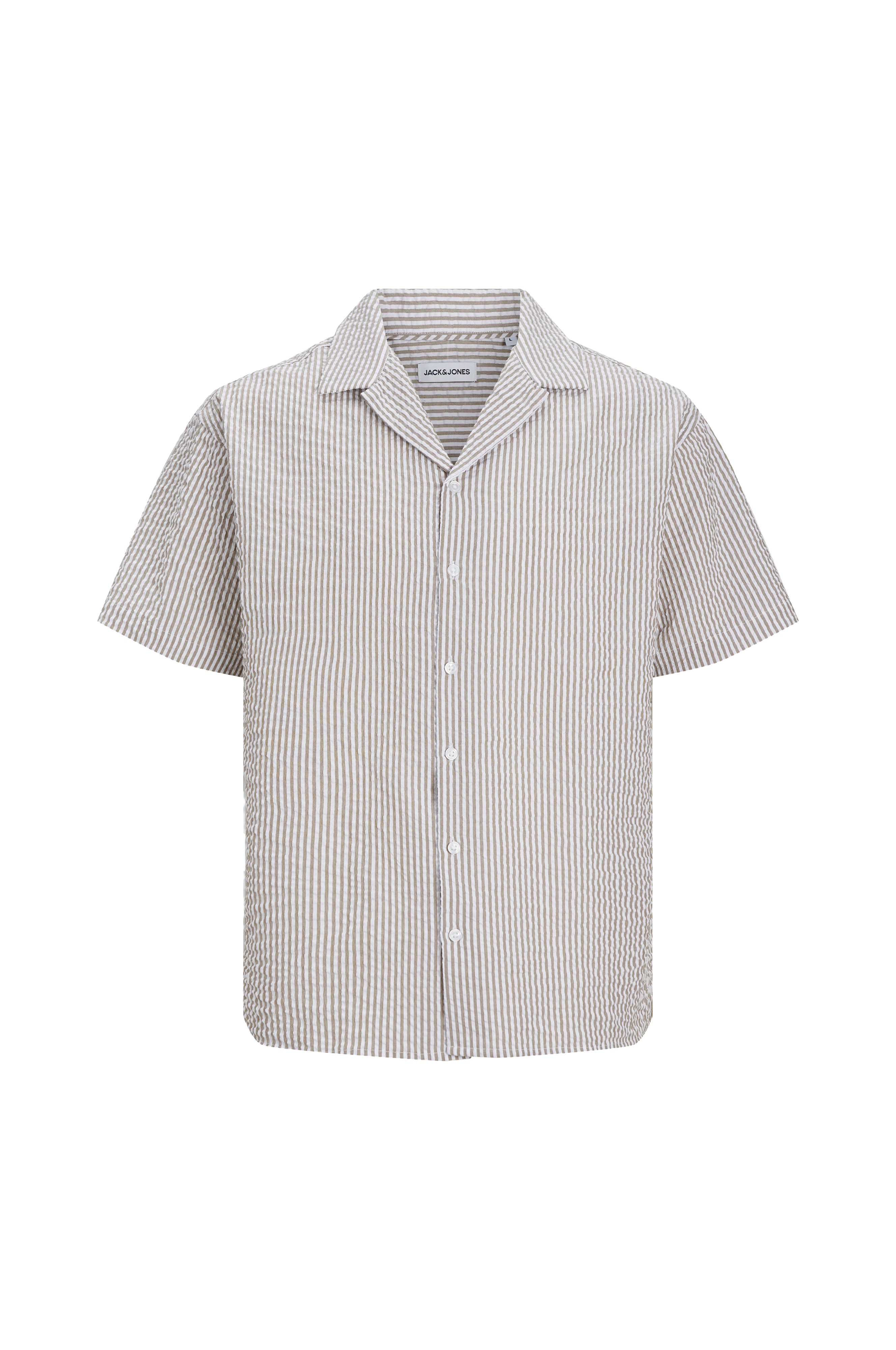 • Stribet skjorte i seersucker• Krave med revers• Ventilationer nede i siderne