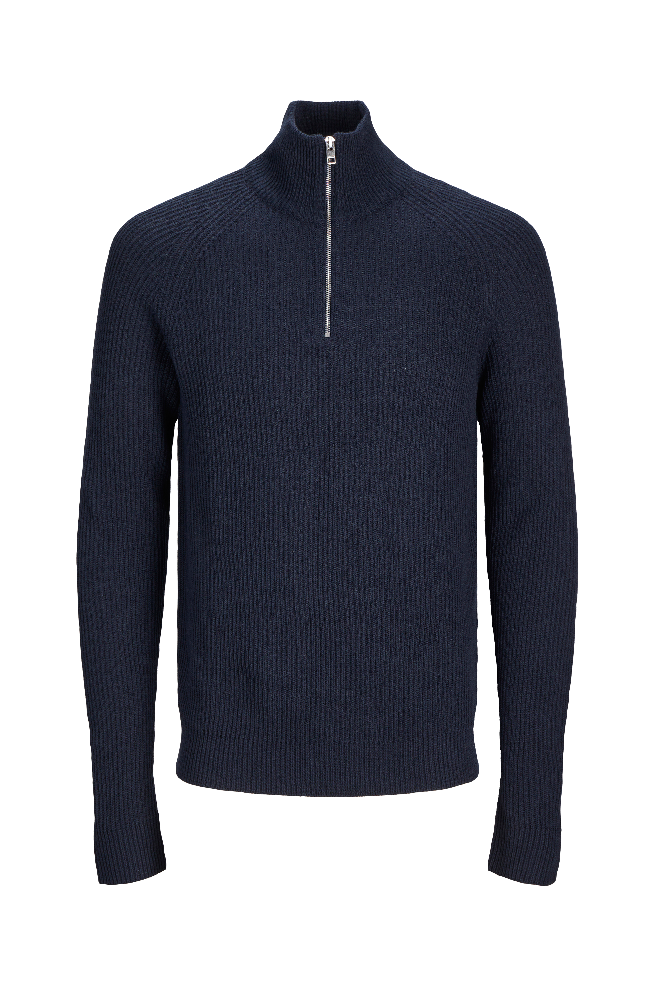 • Strikket trøje i bomuldsblanding• Høj, ribbet halsudskæring• Halvlang lynlås• Raglanærmer
