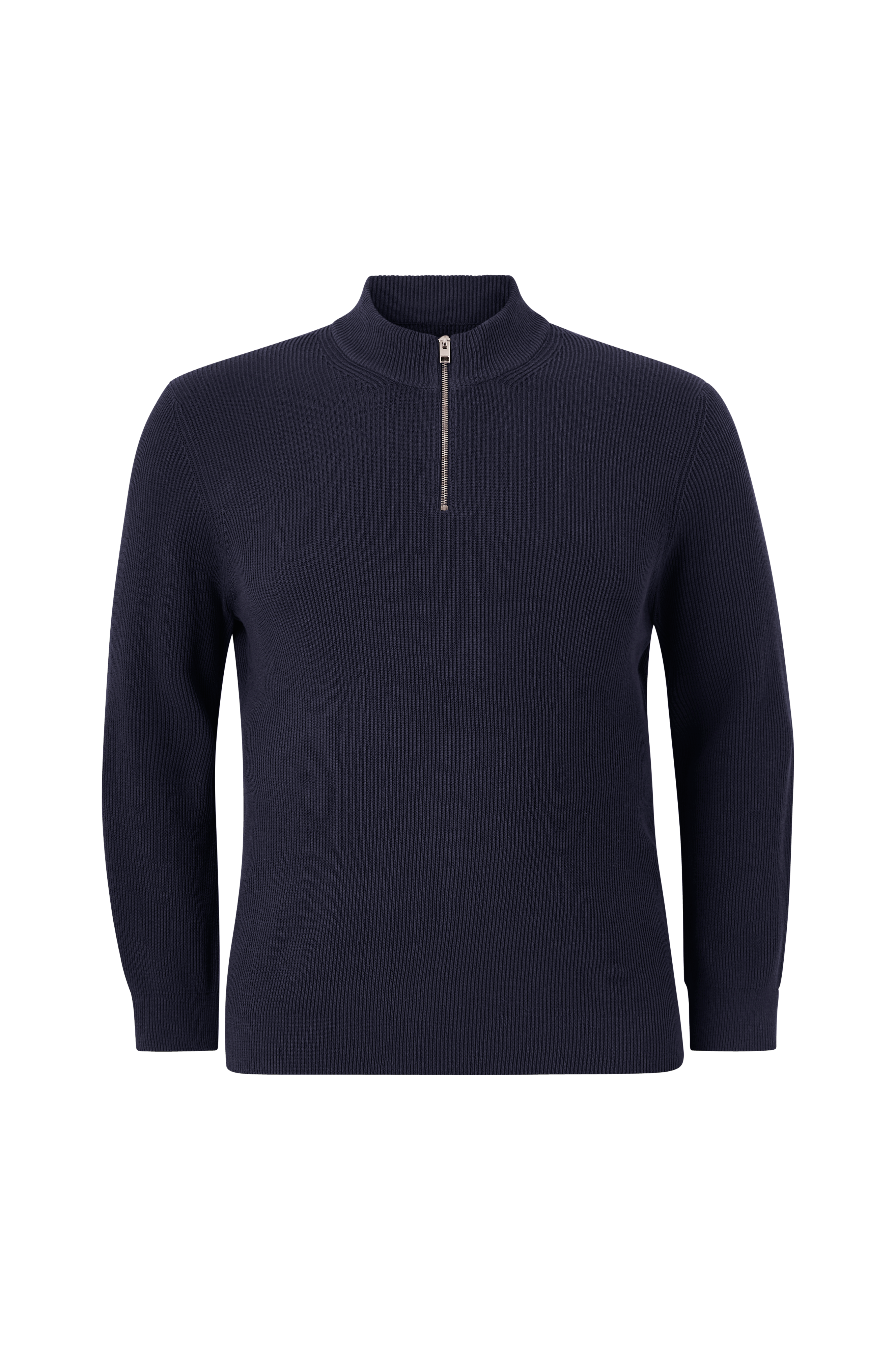 • Ribstrikket trøje• Høj, rund halsudskæring• Kort lynlås