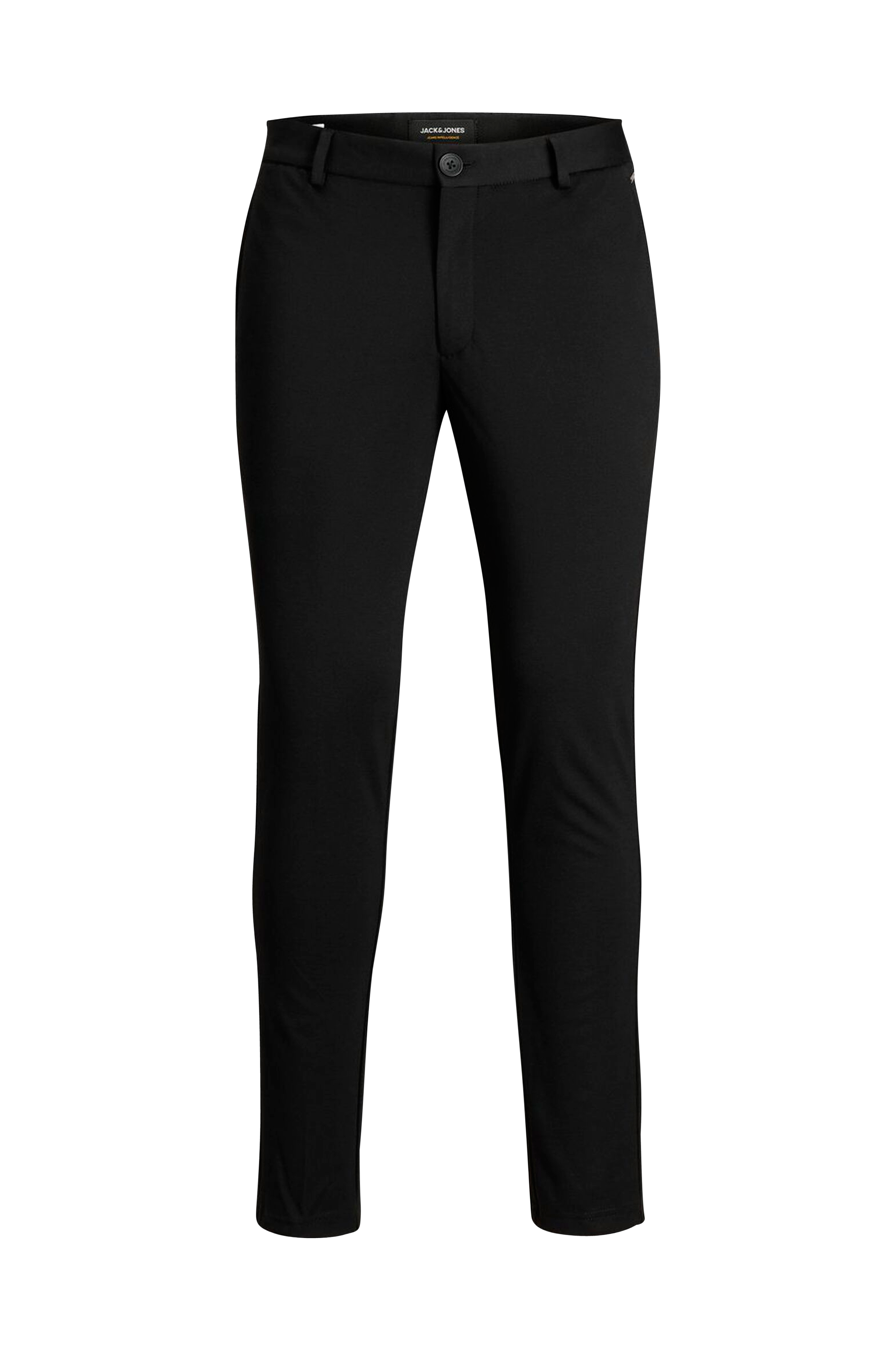 Bukser jjiMarco jjPhil Hersey Nor Black fra Jack & Jones i stylet model med smal pasform. I stretchjersey. Lommer i siderne og bagpå. Gylp med lynlås.