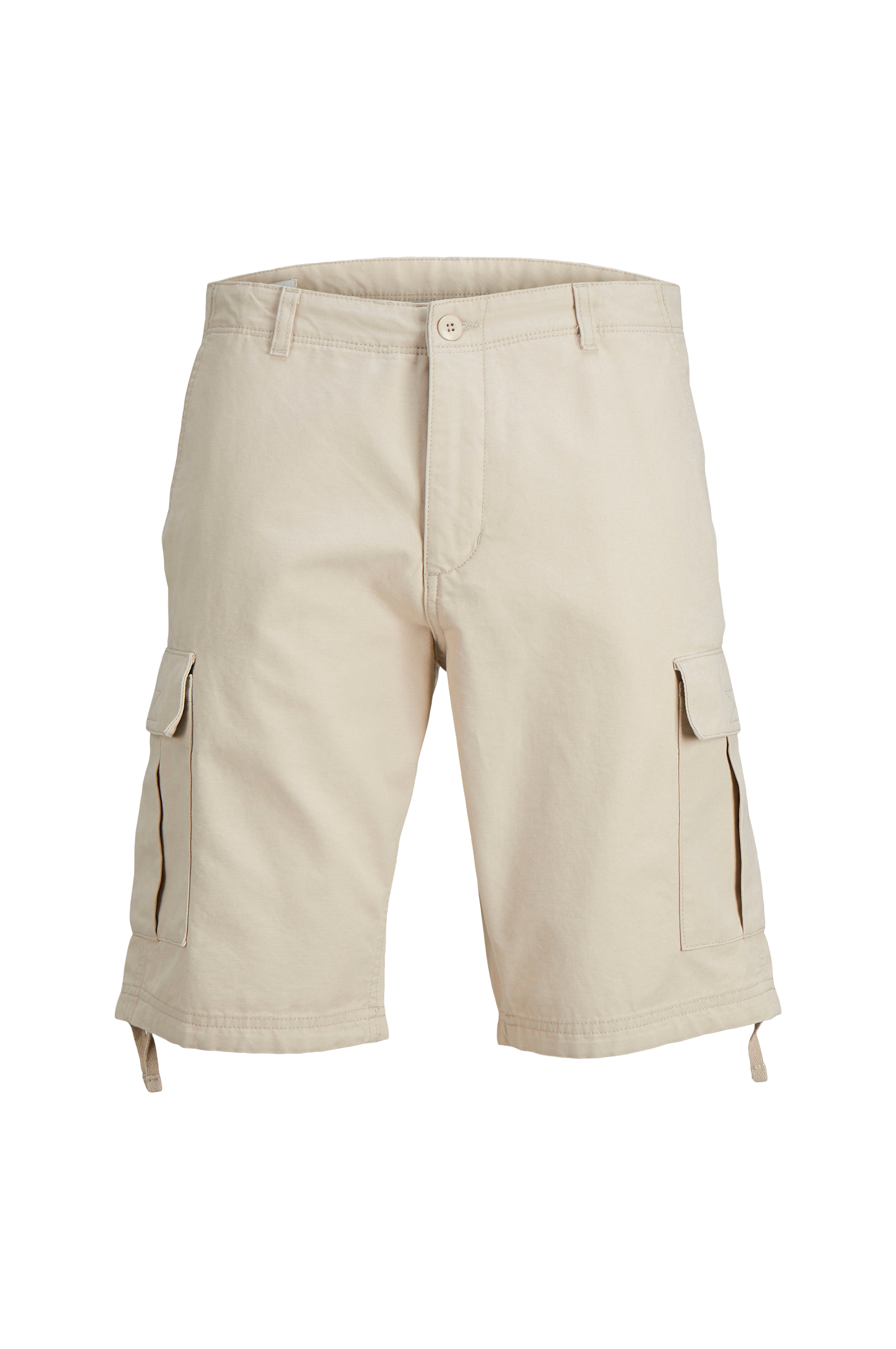 • Cargo shorts i bomuld• Stropper• Gylp med lynlås• Sidelommer• To paspolerede lommer bagpå• To benlommer med lommelåg og velcrolukning• Træksnørre ved enden af benene