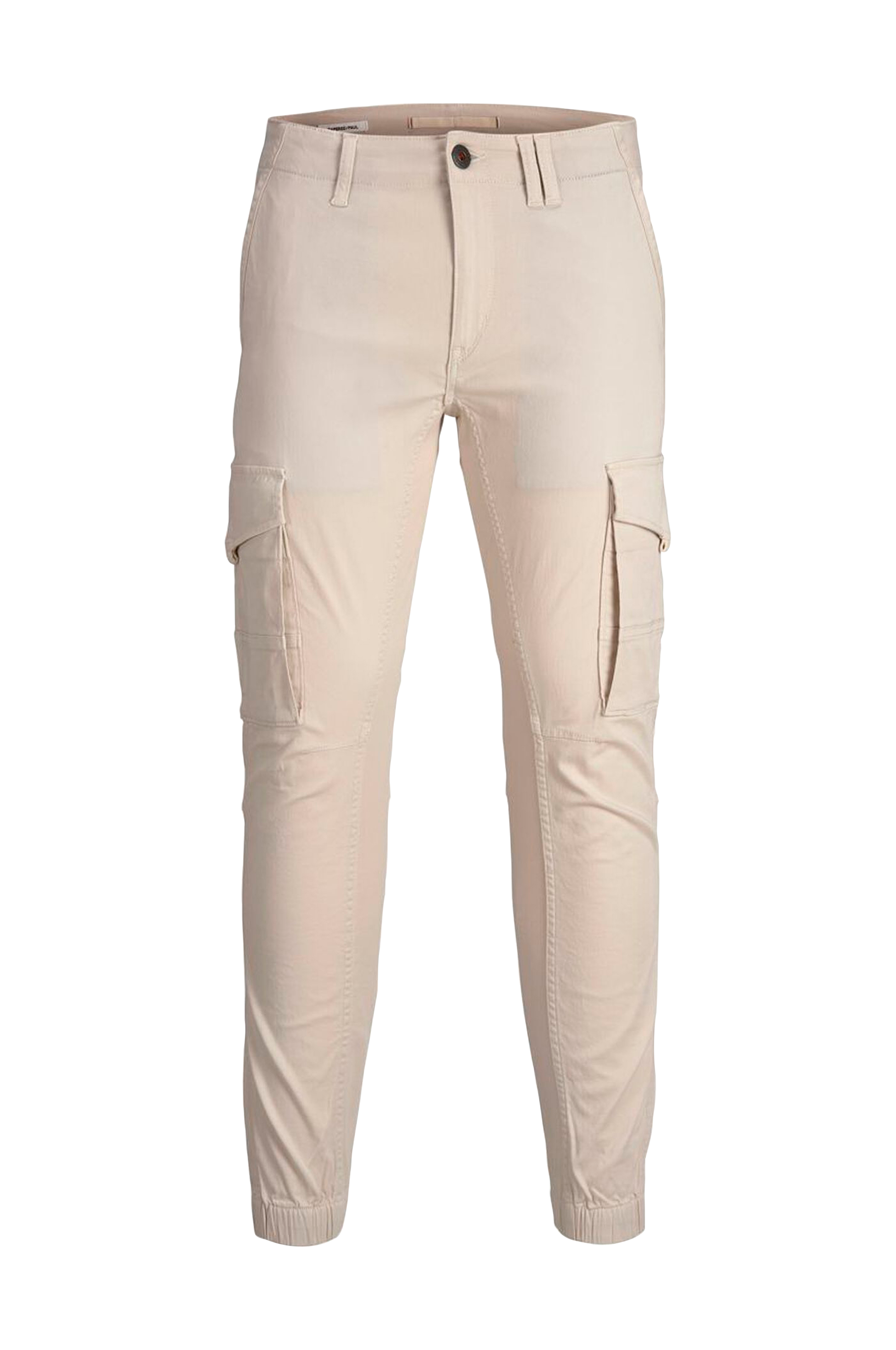 • Stræktwill • Indsnævrende pasform • Tre lommer foran • To baglommer • To benlommer med skjult trykknap • Knaplukning • Gylp med lynlås • Elastisk bånd ved enden af benene • Produktet indeholder genanvendt bomuld, der er fremstillet af restprodukter eller fra brugt materiale. Med genanvendt bomuld kræves færre kemikalier og mindre vand til produktionen.