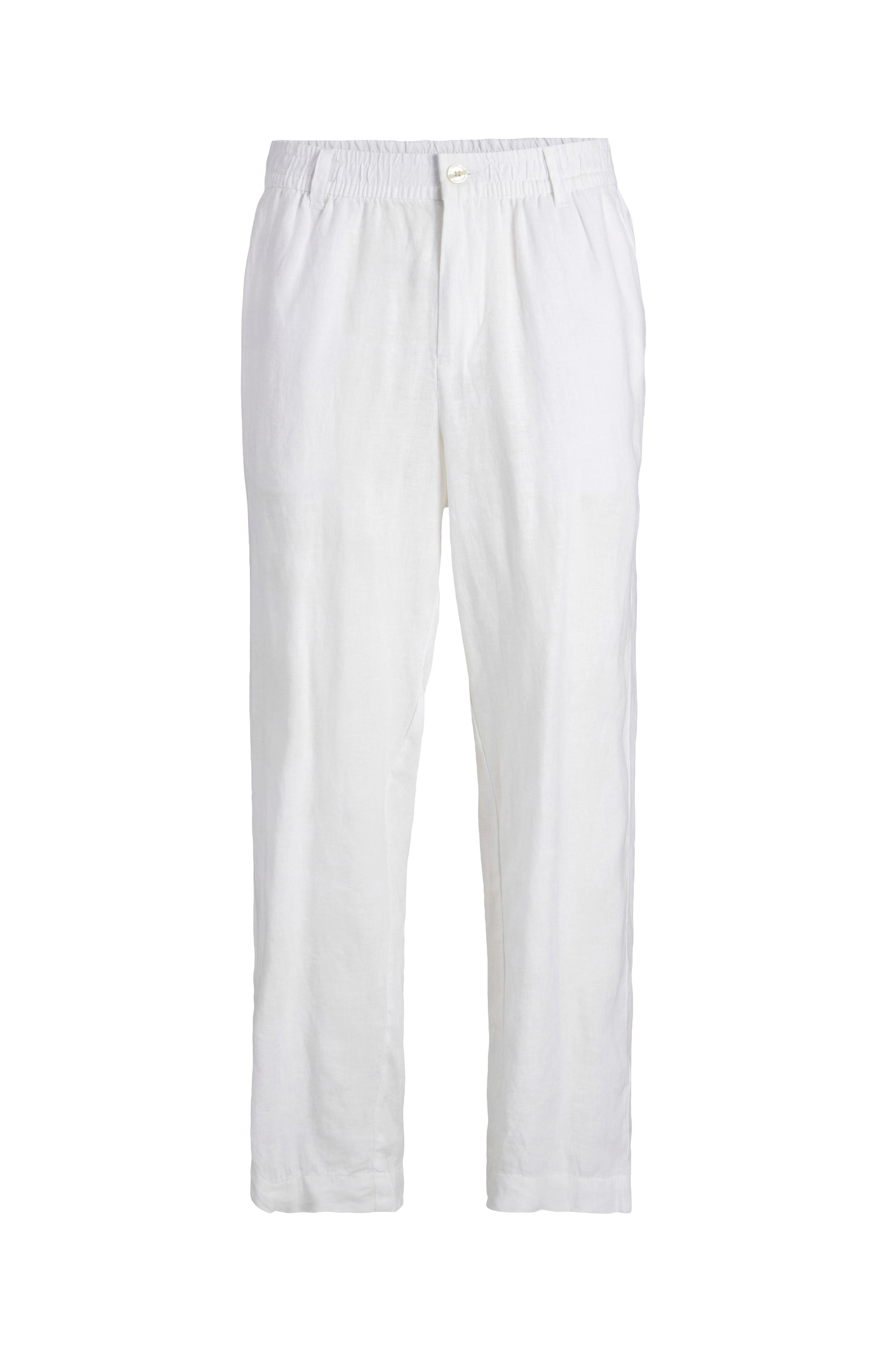 • Chinos i hør med løs pasform• Elastisk talje med knaplukning• Stropper• Gylp med lynlås• Indre benlængde: 72 cm i størrelse M