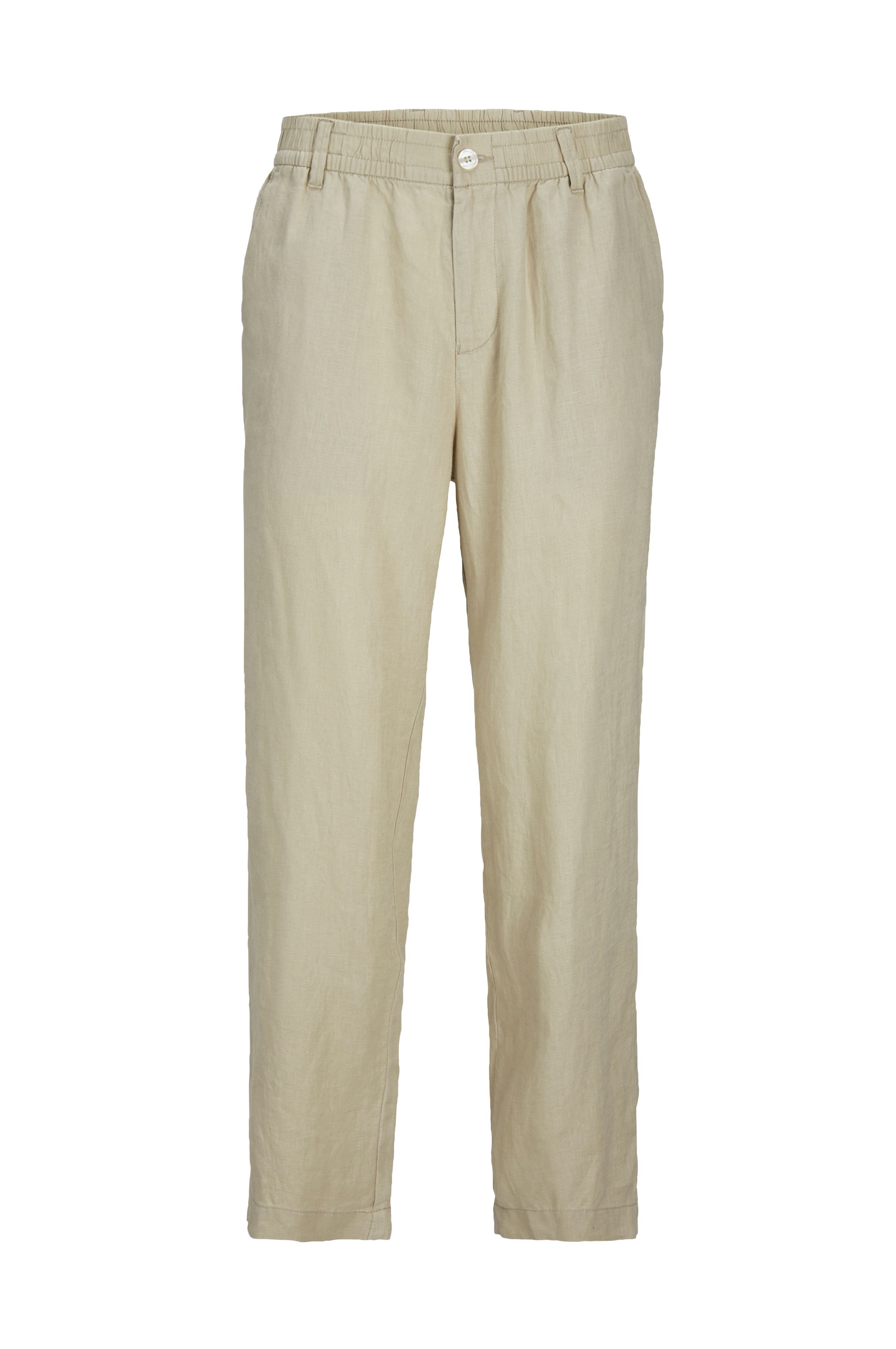 • Chinos i hør med løs pasform• Elastisk talje med knaplukning• Stropper• Gylp med lynlås• Indre benlængde: 72 cm i størrelse M