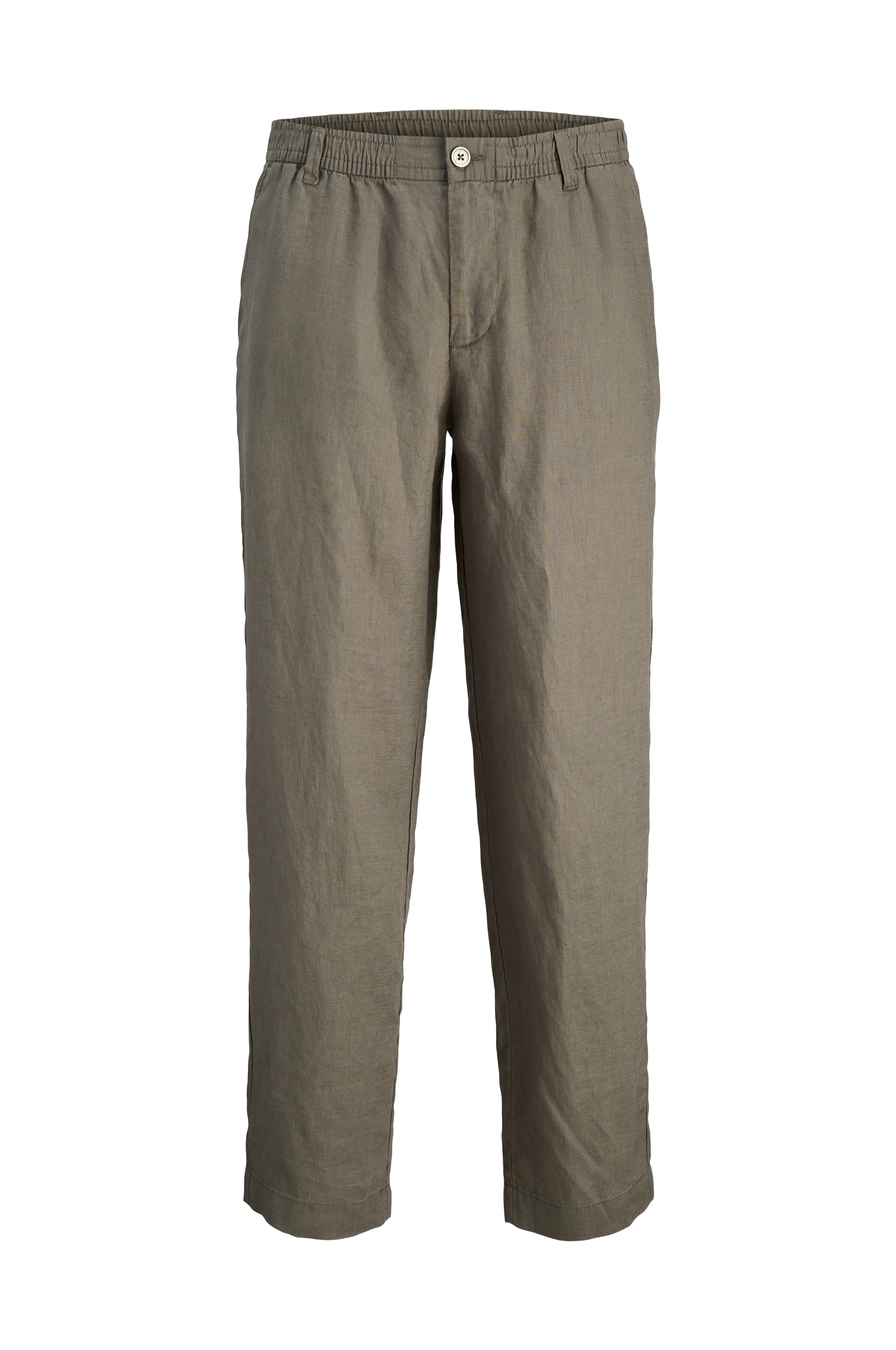 • Chinos i hør med løs pasform• Elastisk talje med knaplukning• Stropper• Gylp med lynlås• Indre benlængde: 72 cm i størrelse M