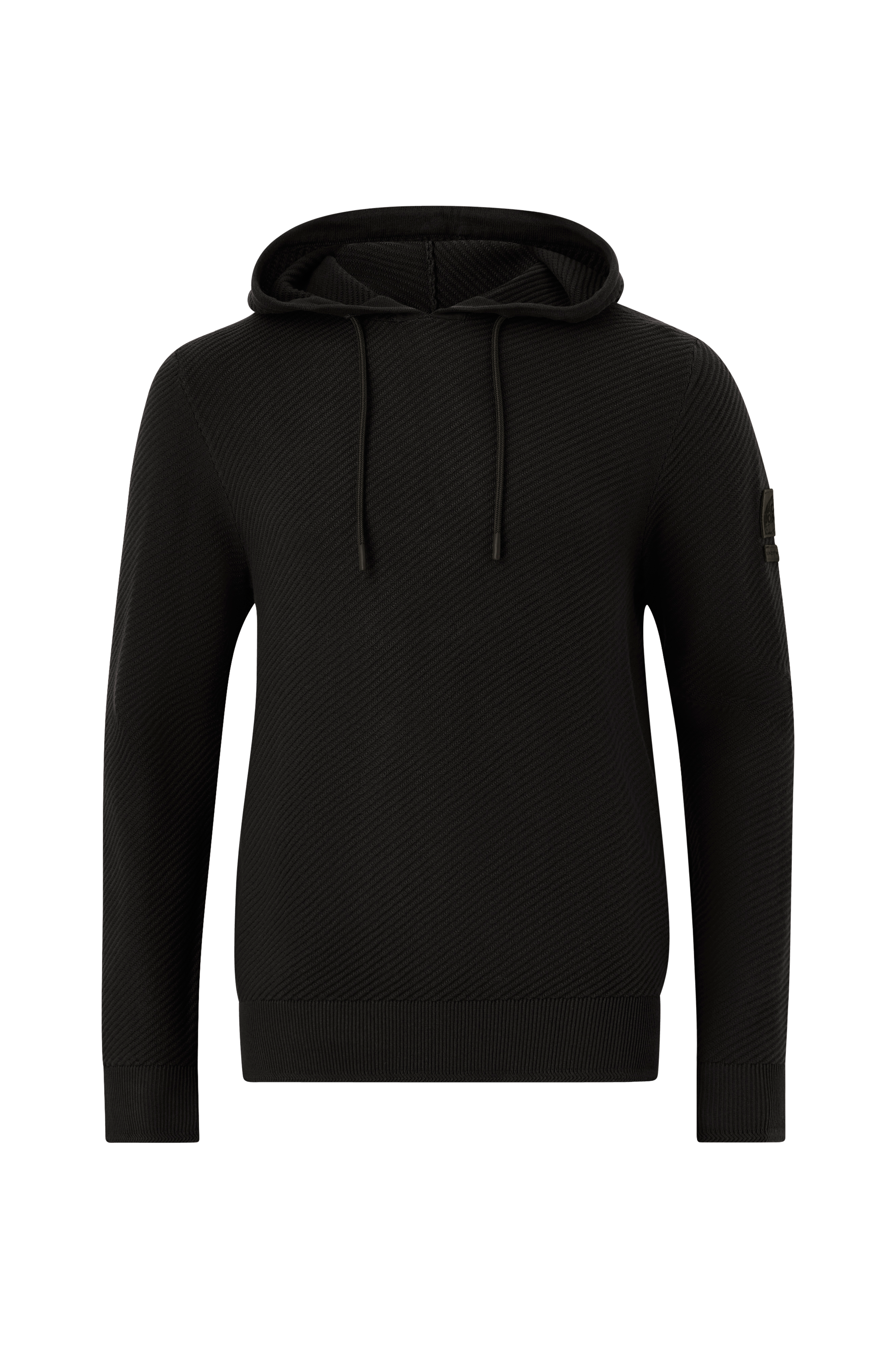 • Strukturstrikket hættetrøje• Hætte med træksnørre• Ribmanchetter ved manchetterne og nederst