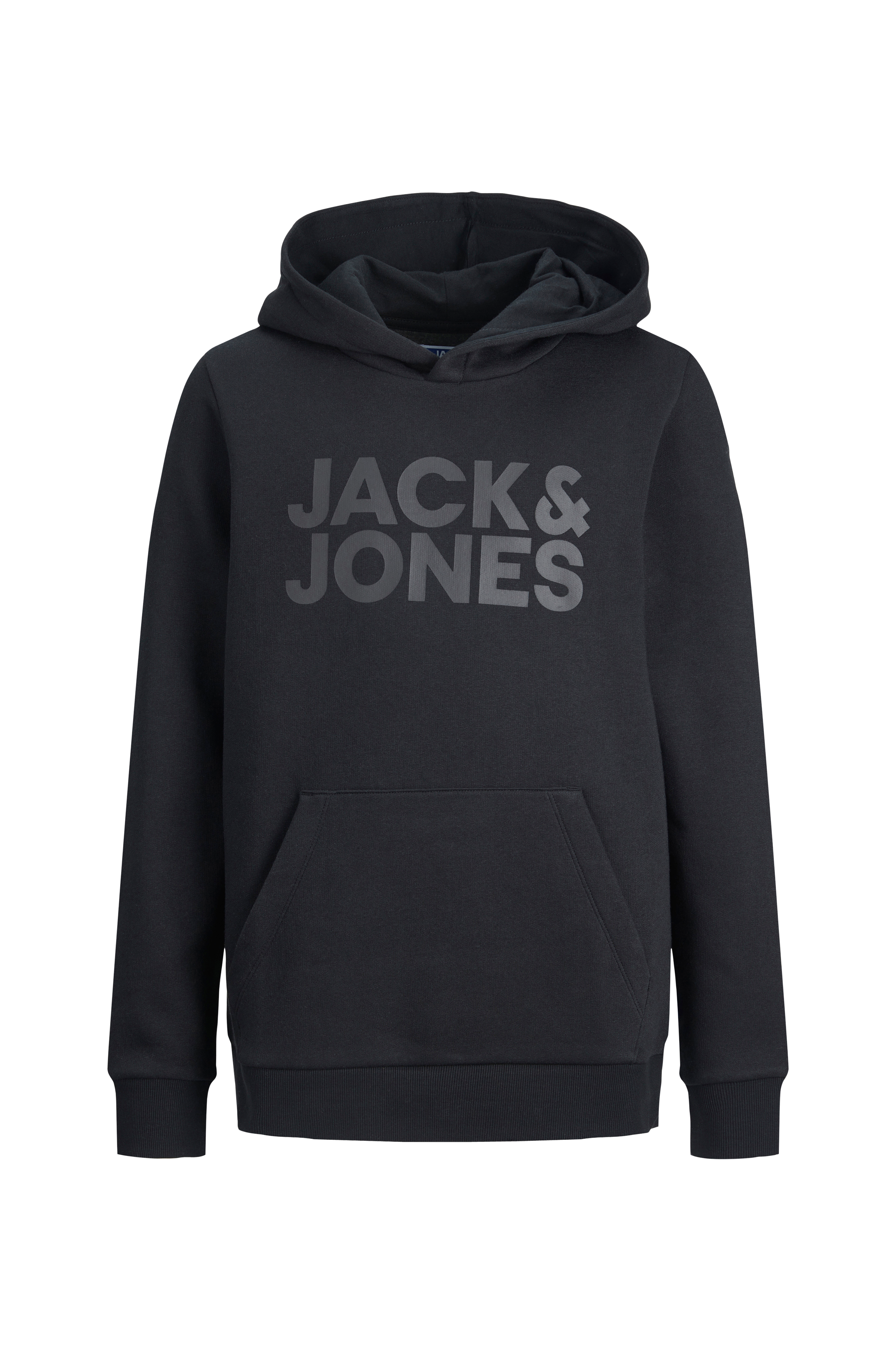 Hættetrøje jjeCorp Logo Sweat Hood fra Jack & Jones med blød, børstet inderside. Hætte med dekorative bånd på siderne. Print foran og kængurulomme. Rib i ærmekant og forneden.